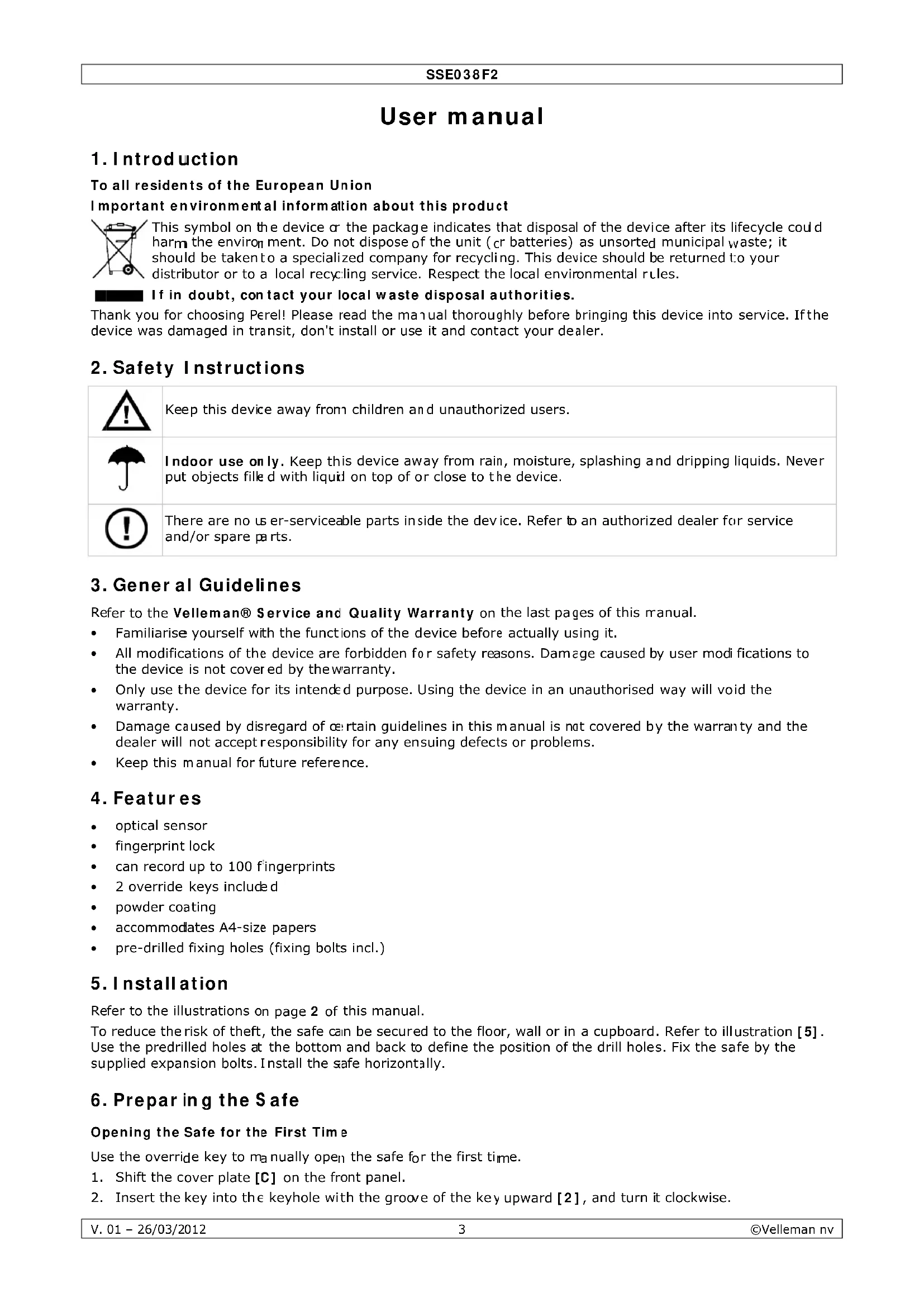 Download the instructions for your Safe in PDF format for free! Find your manual SSE038F2 - Perel and take your electronic device back in hand. On this page are published all the documents necessary for the use of your device. SSE038F2 by Perel.