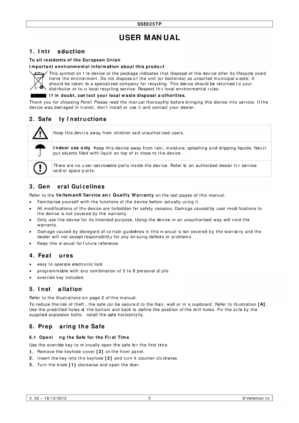 Download the instructions for your Safe in PDF format for free! Find your manual SSE025TP - Perel and take your electronic device back in hand. On this page are published all the documents necessary for the use of your device. SSE025TP by Perel.