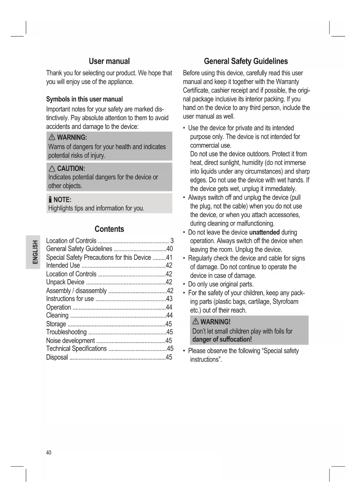 - For the safety of your children, keep any pack- ing parts (plastic bags, cartilage, Styrofoam etc.) out of their reach. WARNING! Don’t let small children play with foils for danger of suffocation!