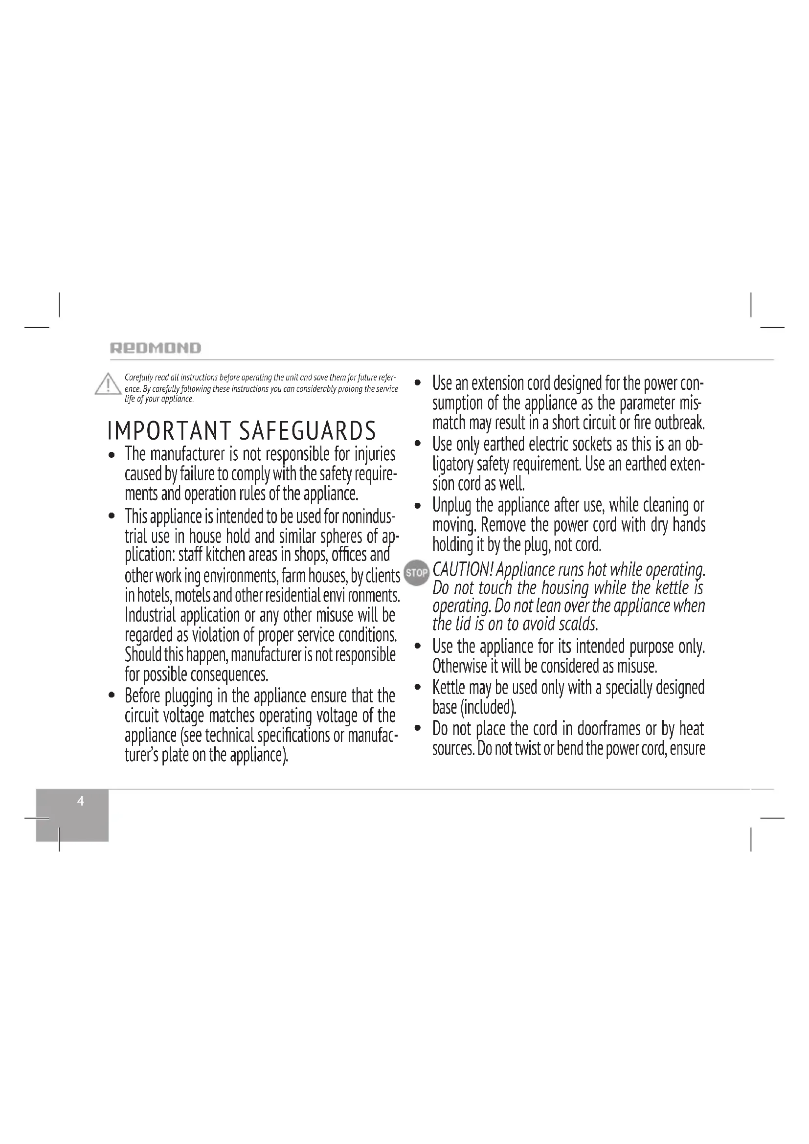 RKG151E - Kettle Redmond - Free user manual and instructions