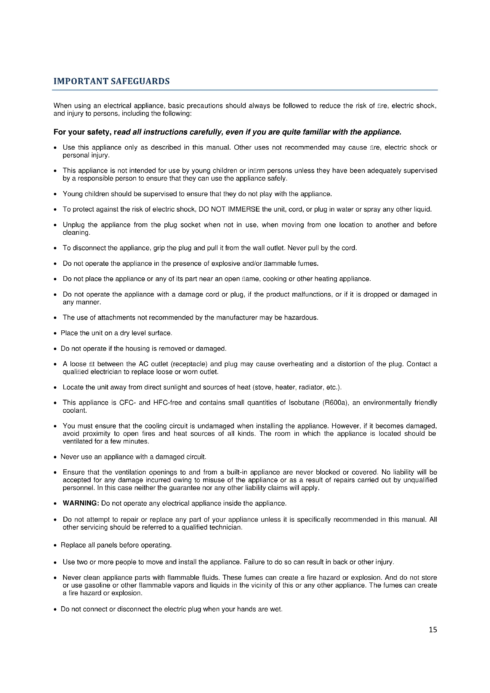 - This appliance must not be used by person with affected mental capacities (including children), lack of experience or knowledge, excepting under the supervision of an experimented and responsible person.