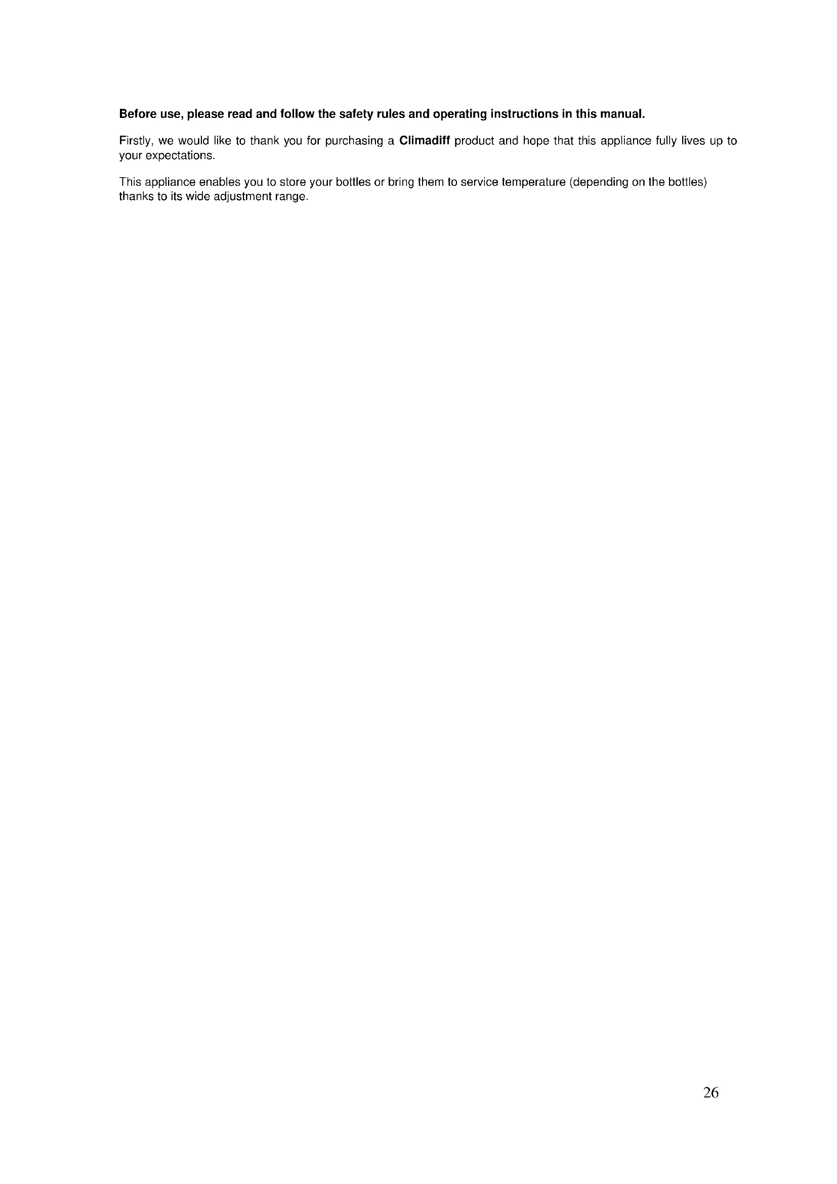 Firstly, we would like to thank you for purchasing a Climadiff product and hope that this appliance fully lives up to your expectations.