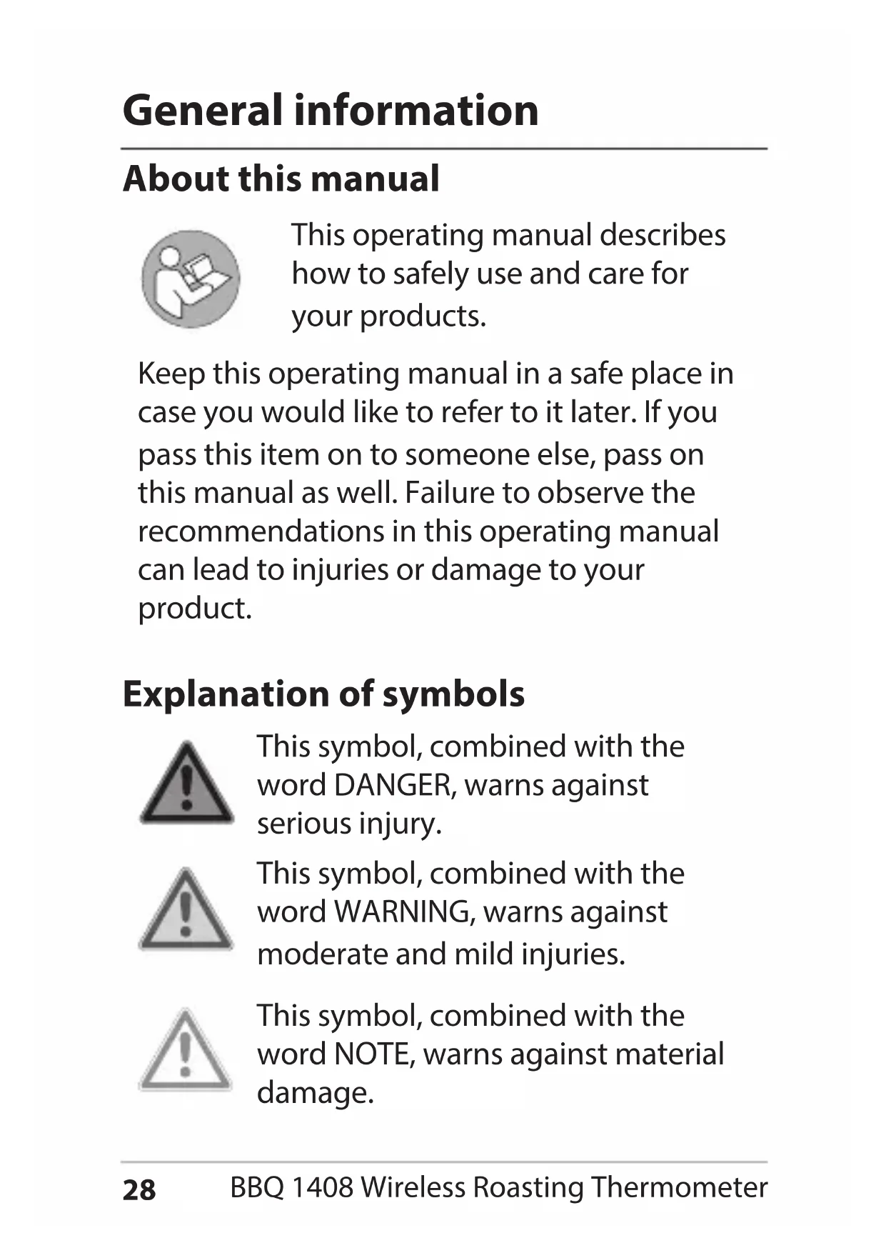 Keep this operating manual in a safe place in case you would like to refer to it later. If you pass this item on to someone else, pass on this manual as well. Failure to observe the recommendations in this operating manual can lead to injuries or damage to your product.
