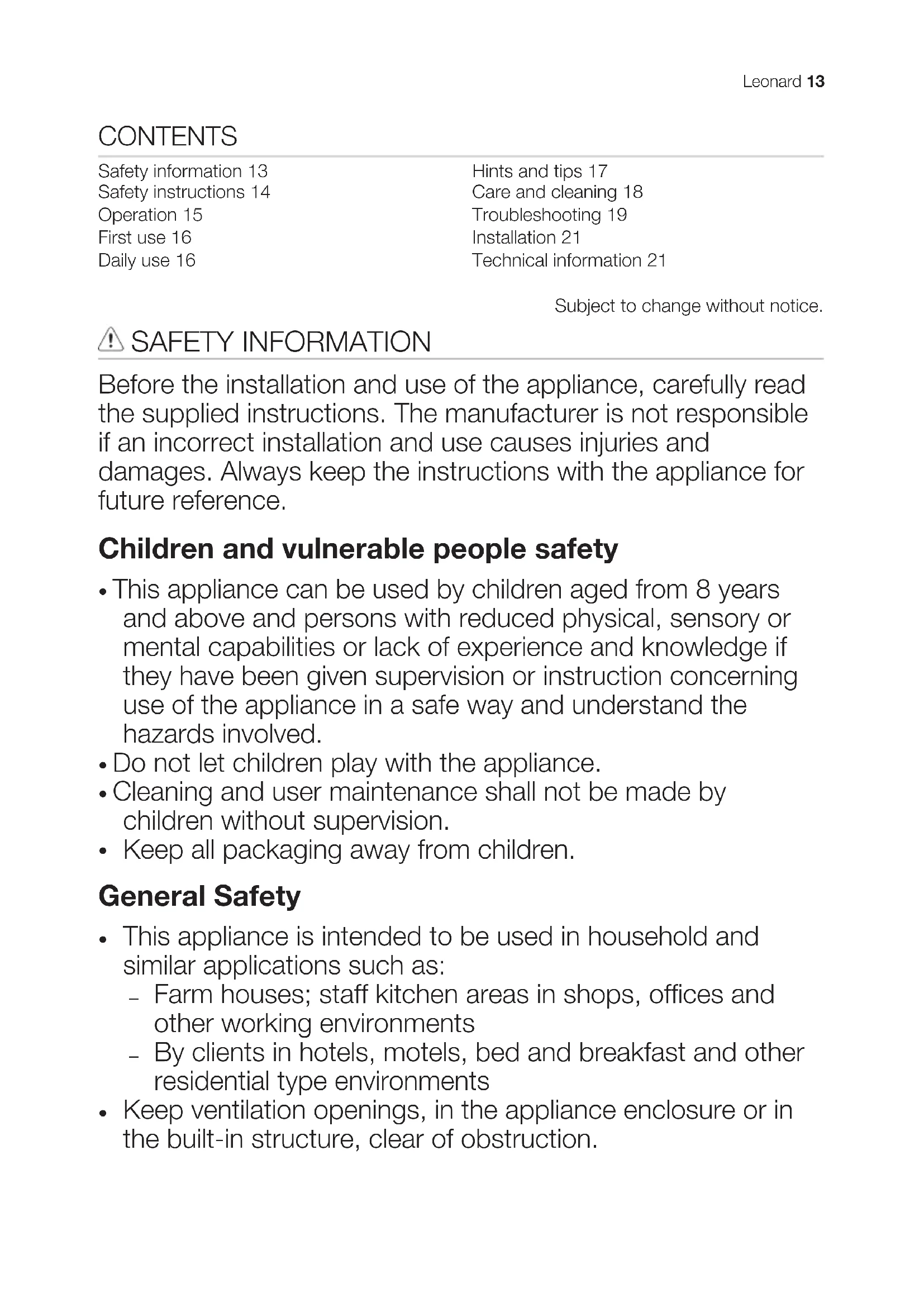Safety instructions 14