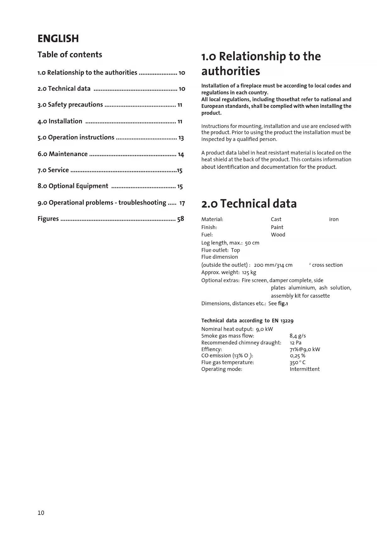 - The fireplace can be connected to a chimney and flue pipe approved for solid fuel fired fireplaces with flue gas temperatures specified in «2.0 Technical data».