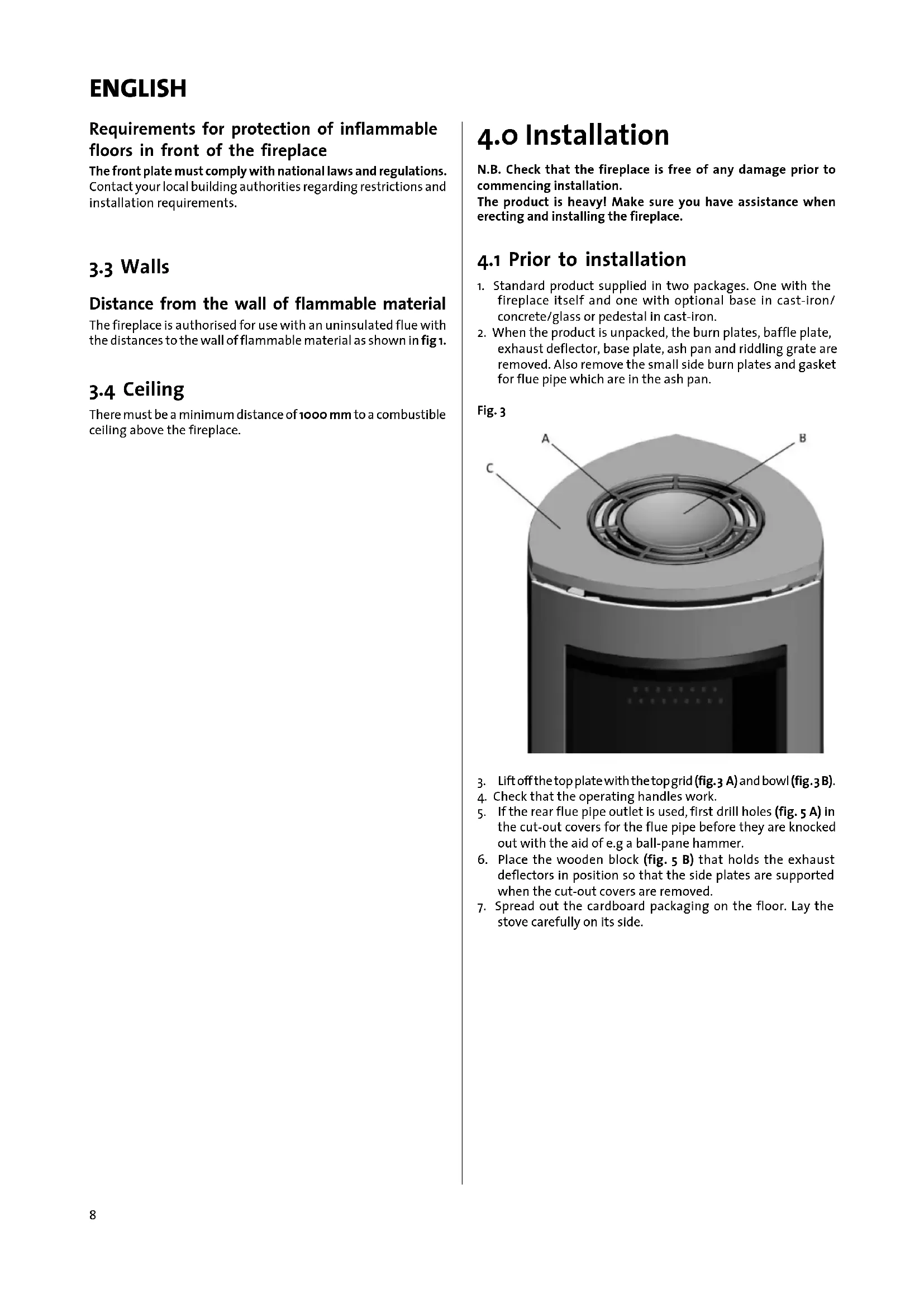 N.B. Check that the fireplace is free of any damage prior to commencing installation. The product is heavy! Make sure you have assistance when erecting and installing the fireplace.