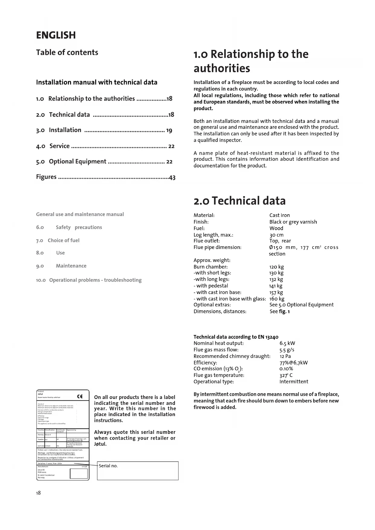 • The fireplace can be connected to a chimney and flue pipe approved for solid fuel fired appliances with flue gas temperatures specified in «2.0 Technical data.