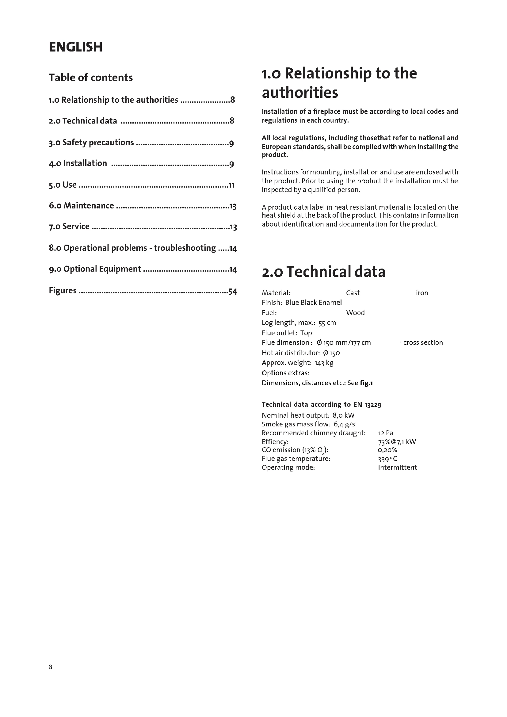 Upon suspicion of excessive/poor draught in the chimney, seek professional help. See also «2.0 Technical data» and «4.5 Chimney» for information.