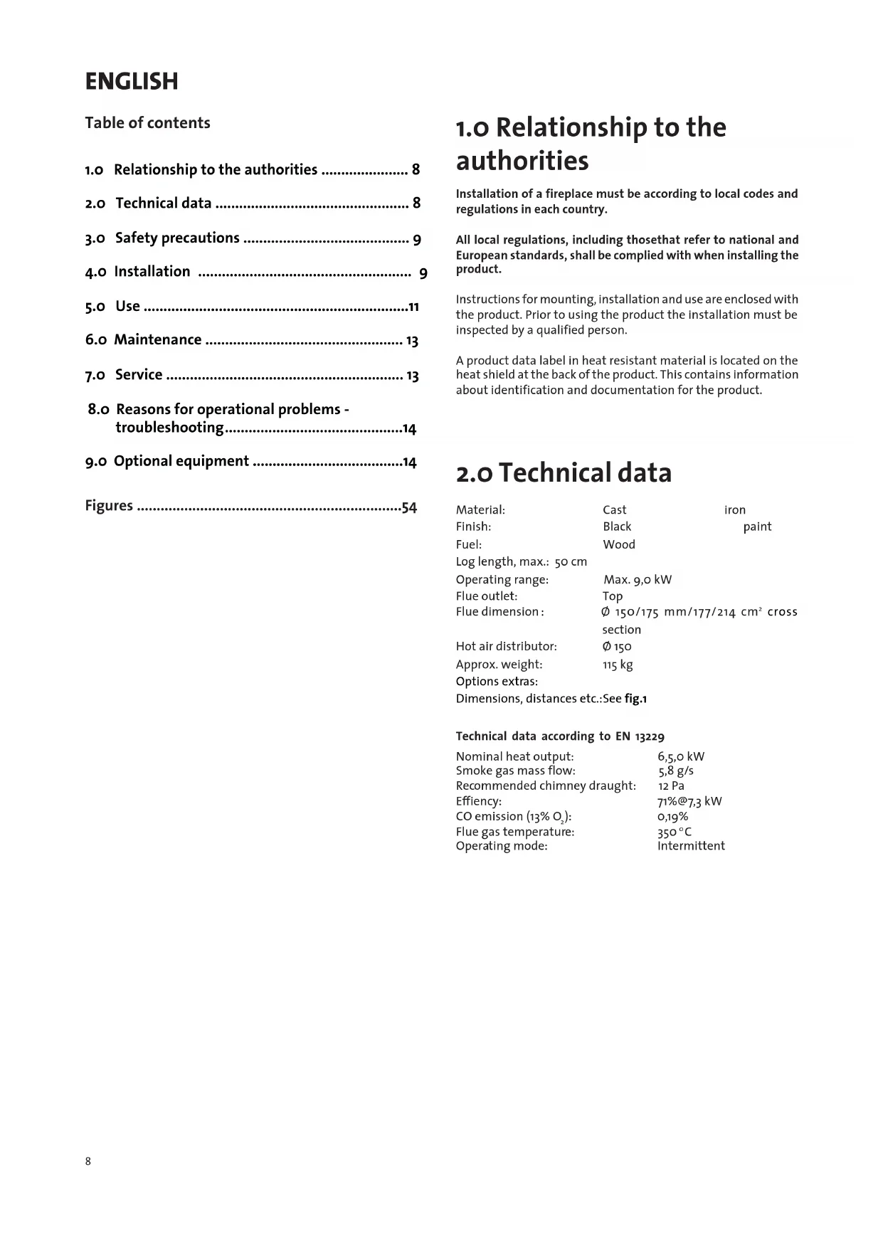 2.0 Technical data 8