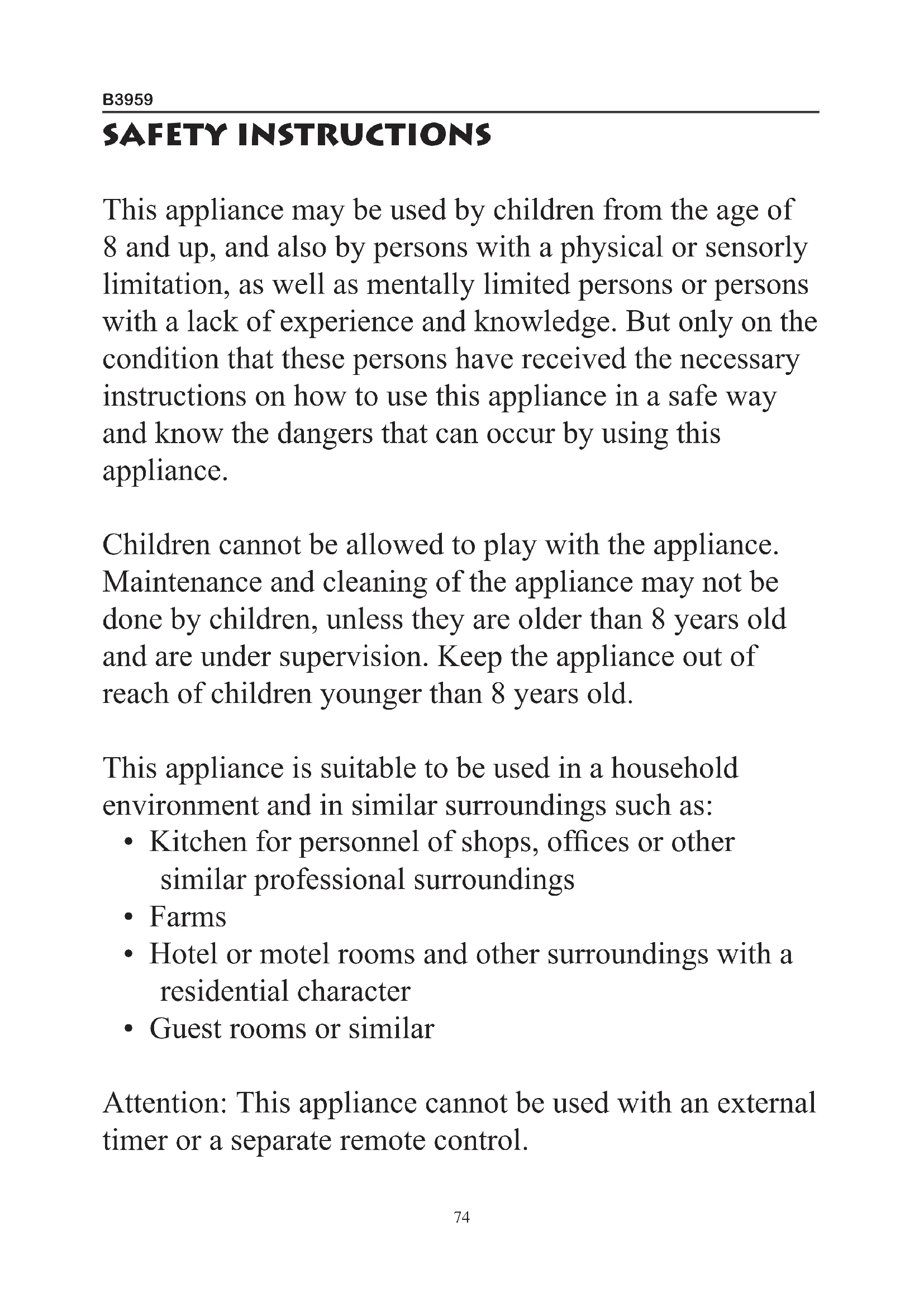 - Guest rooms or similar Attention: This appliance cannot be used with an external timer or a separate remote control.B3959