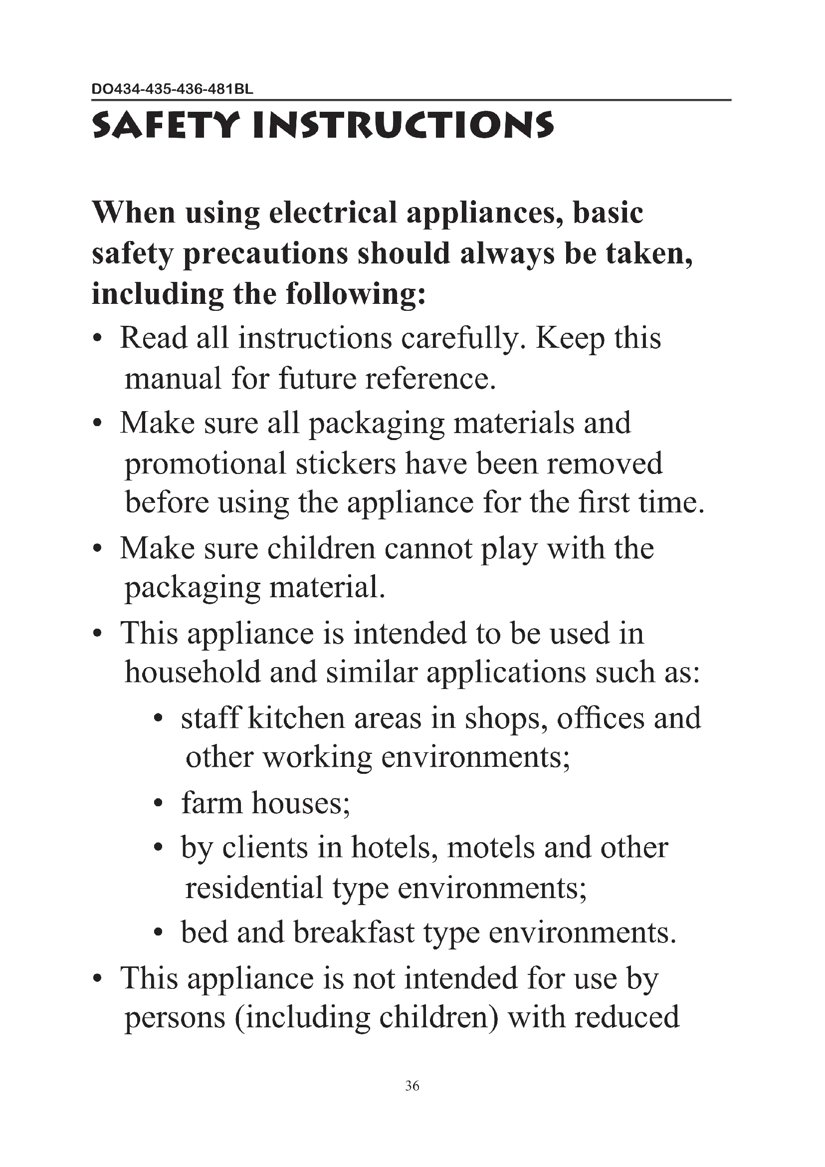 physical, sensory or mental capabilities, or lack of experience and knowledge, unless they have been given supervision or instruction concerning use of the appliance by a person responsible for their safety.
