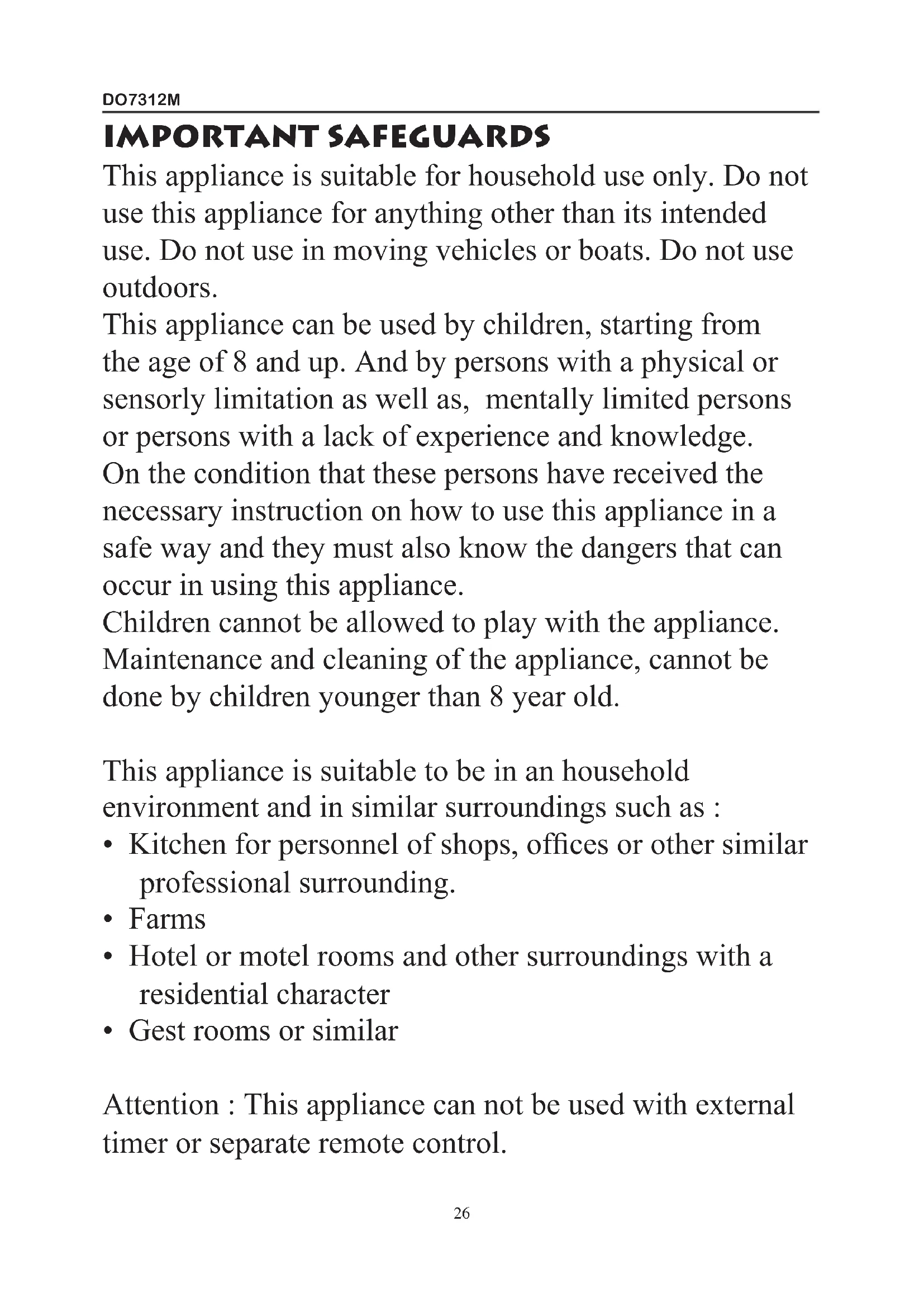 - Gest rooms or similar Attention : This appliance can not be used with external timer or separate remote control.DO7312M