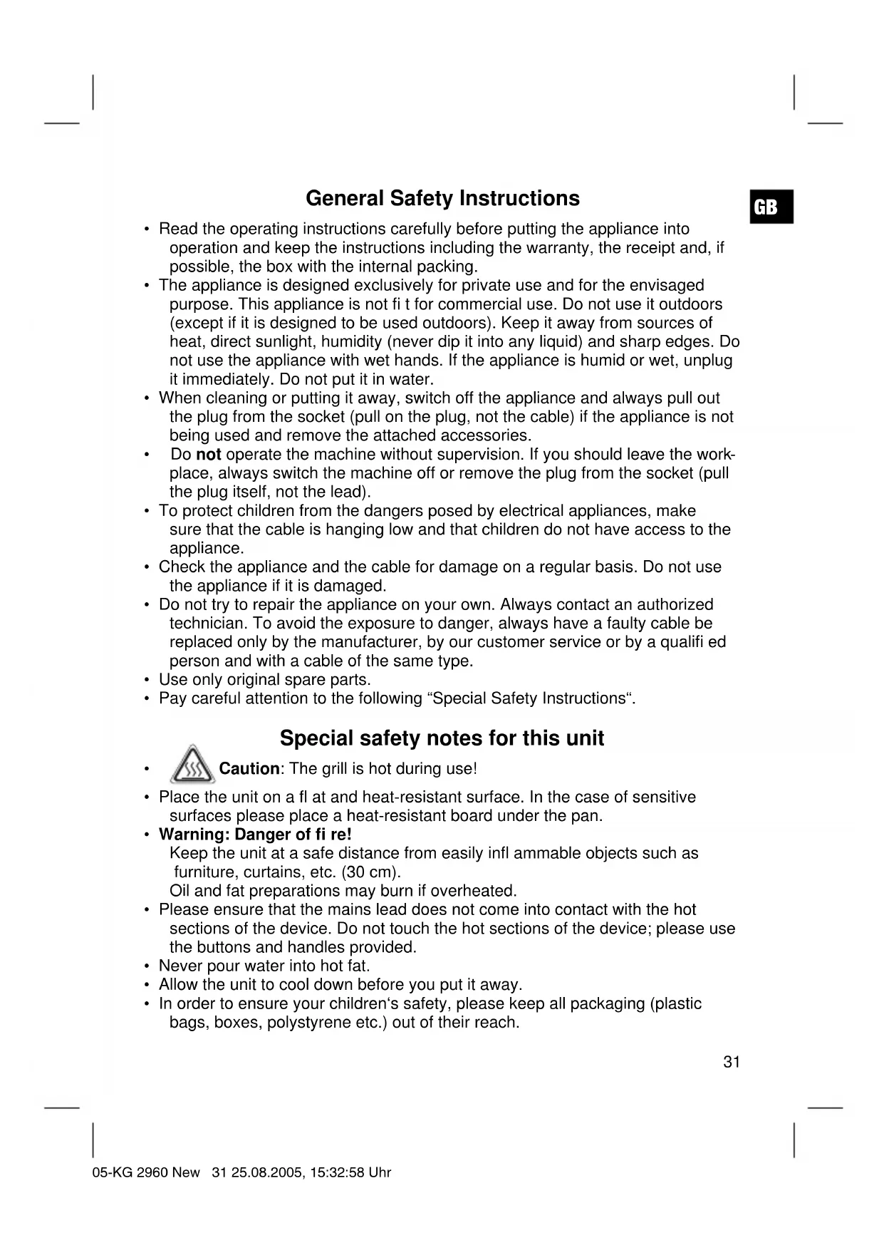- In order to ensure your children‘s safety, please keep all packaging (plastic bags, boxes, polystyrene etc.) out of their reach. 05-KG 2960 New 31 25.08.2005, 15:32:58 UhrGB