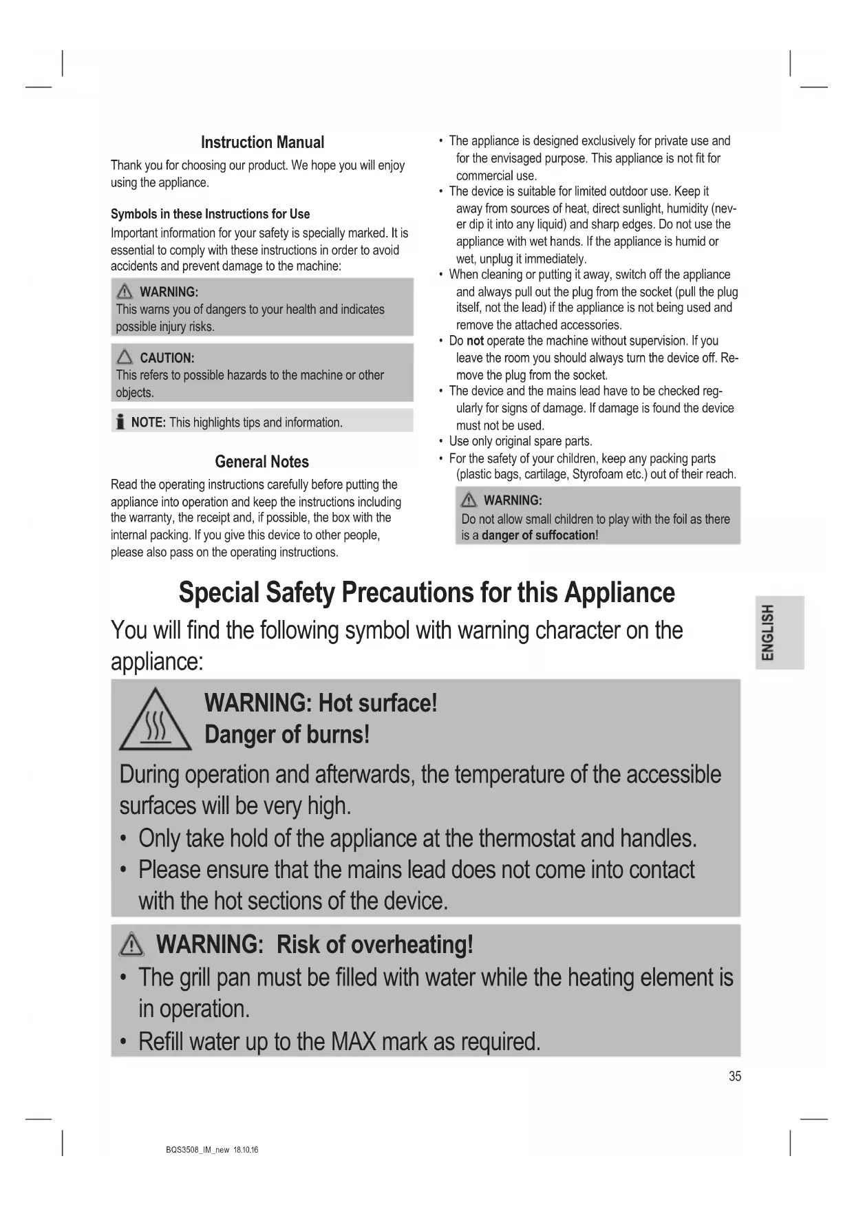 - Put the device on a at, heat resistant surface.37 BQS3508_IM_new 18.10.16