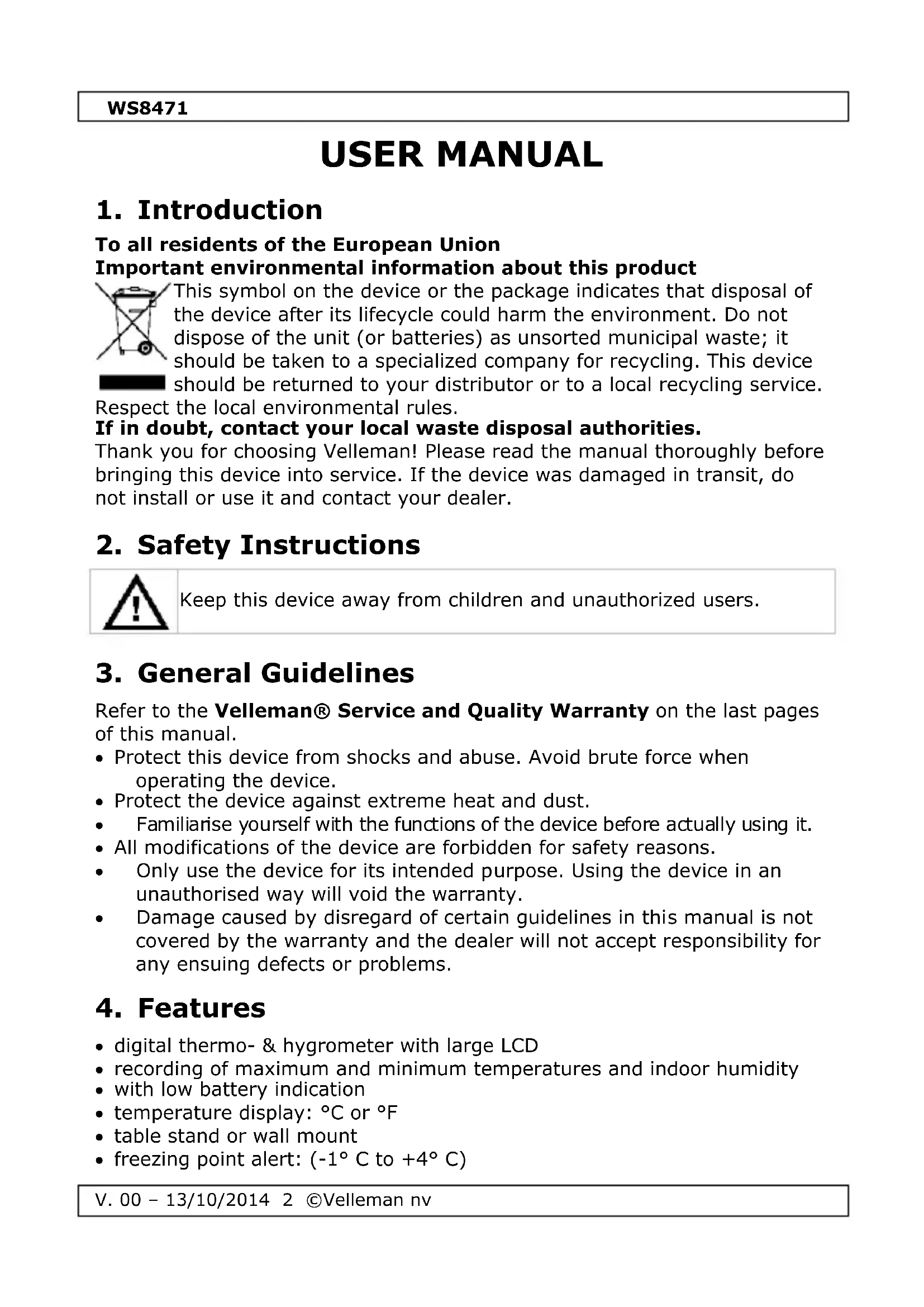 V. 00 – 13/10/2014 4 ©Velleman nv