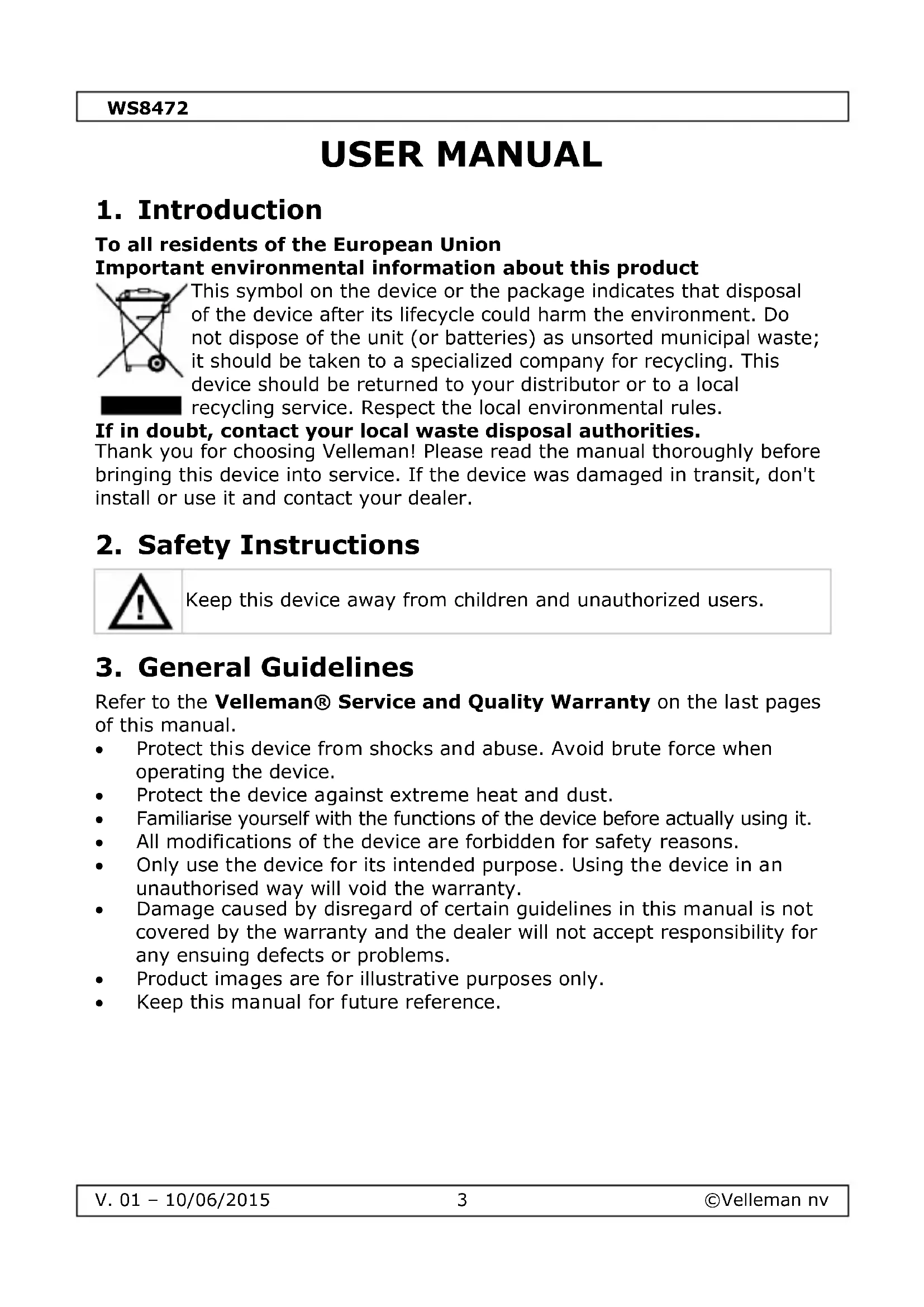 Find the device manual for free WS8472 VELLEMAN in PDF.