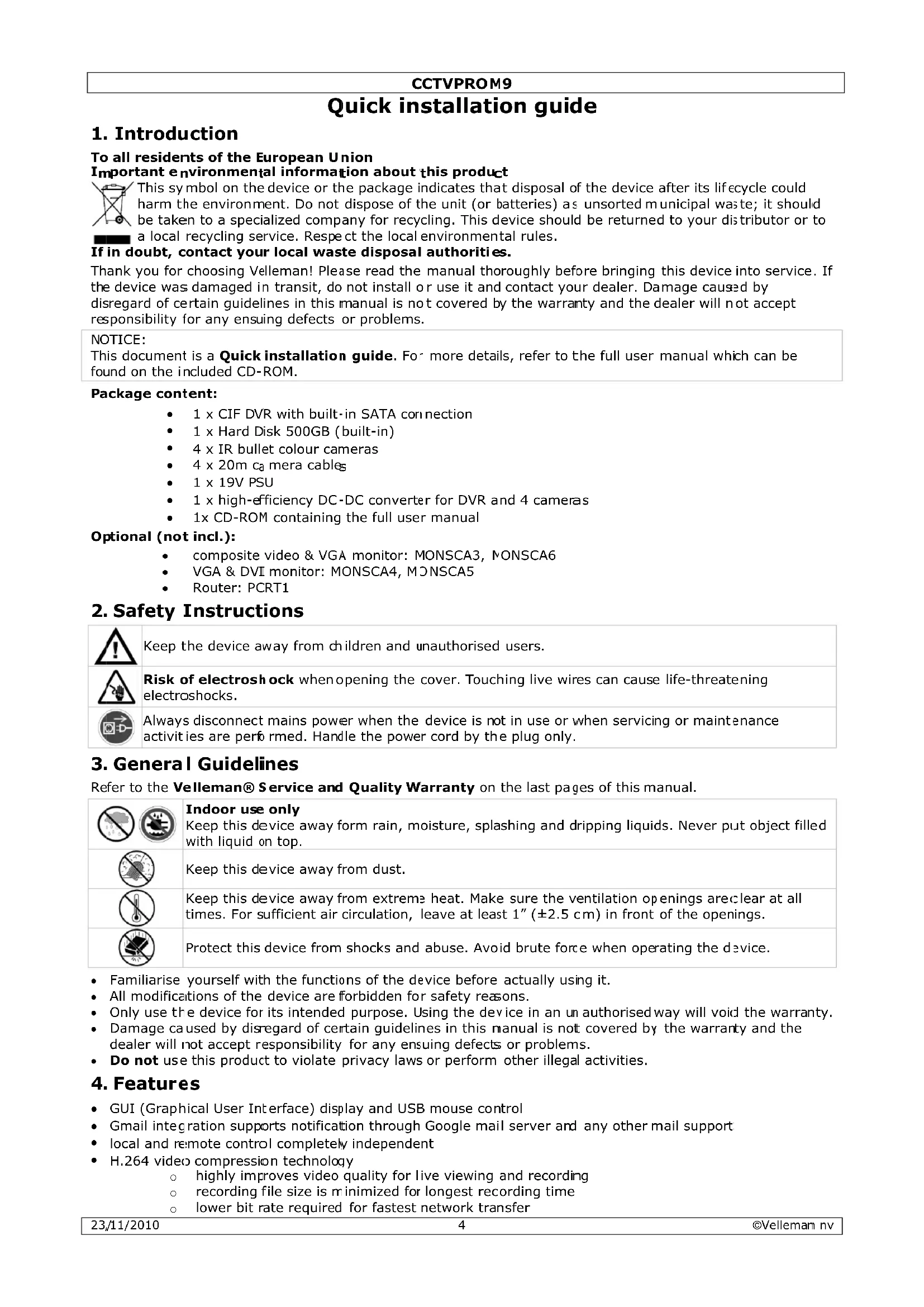 Find the device manual for free CCTVprom 9 VELLEMAN in PDF.