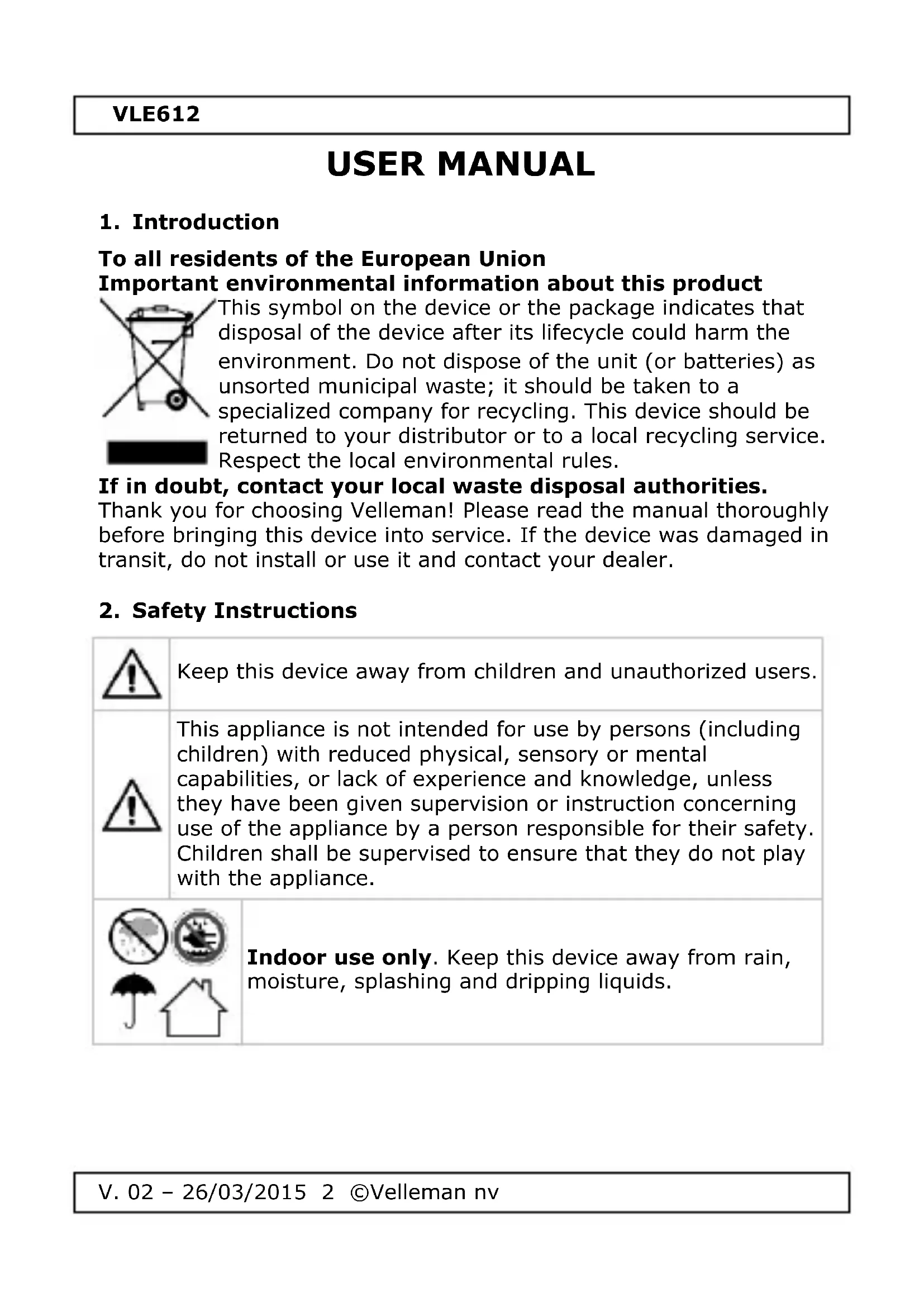 USER MANUAL VLE612 VELLEMAN