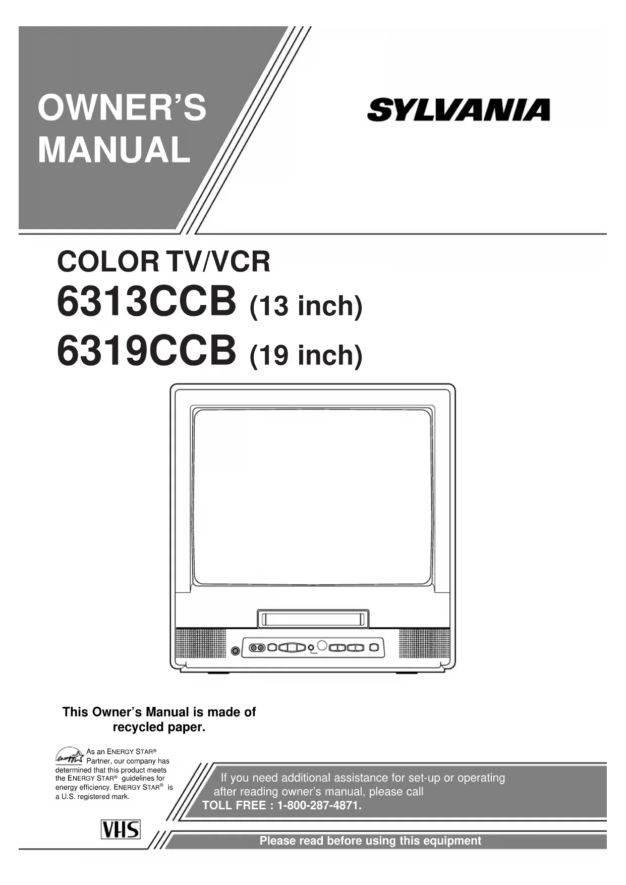 6319CCB - TV SYLVANIA - Free user manual and instructions