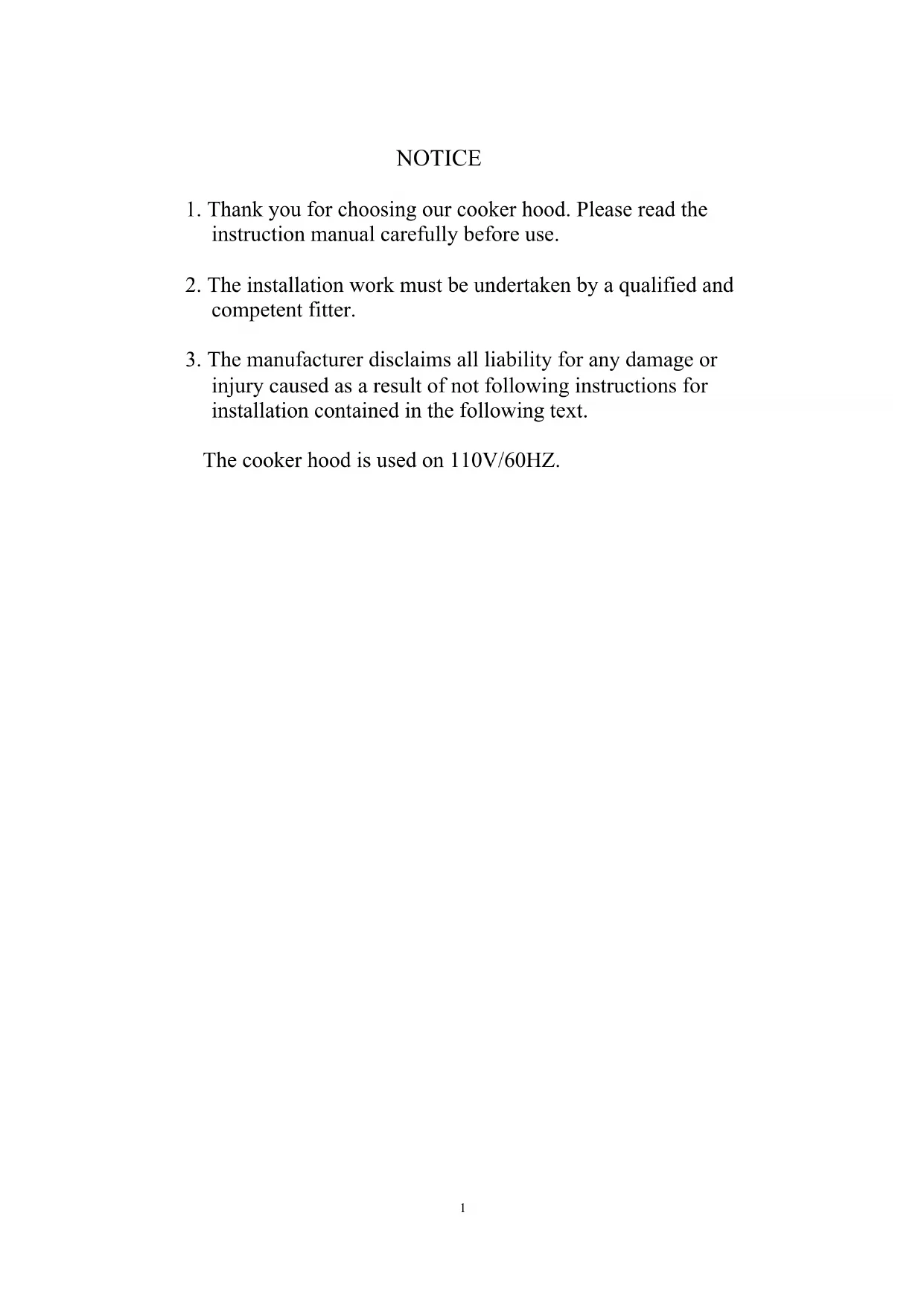 1. Thank you for choosing our cooker hood. Please read the
