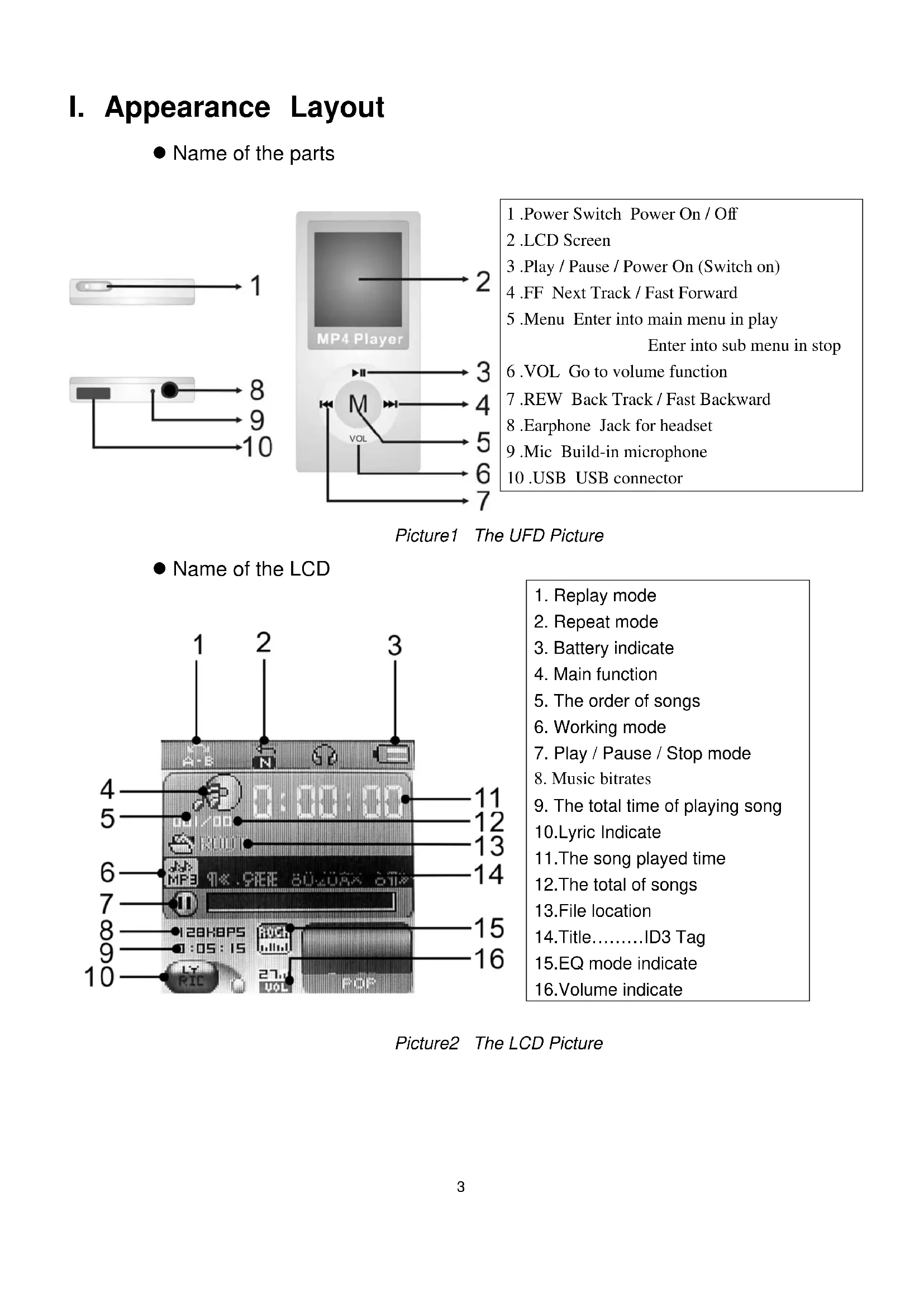 10.Lyric Indicate 11.The song played time 12.The total of songs 13.File location 14.Title………ID3 Tag 15.EQ mode indicate 16.Volume indicate4