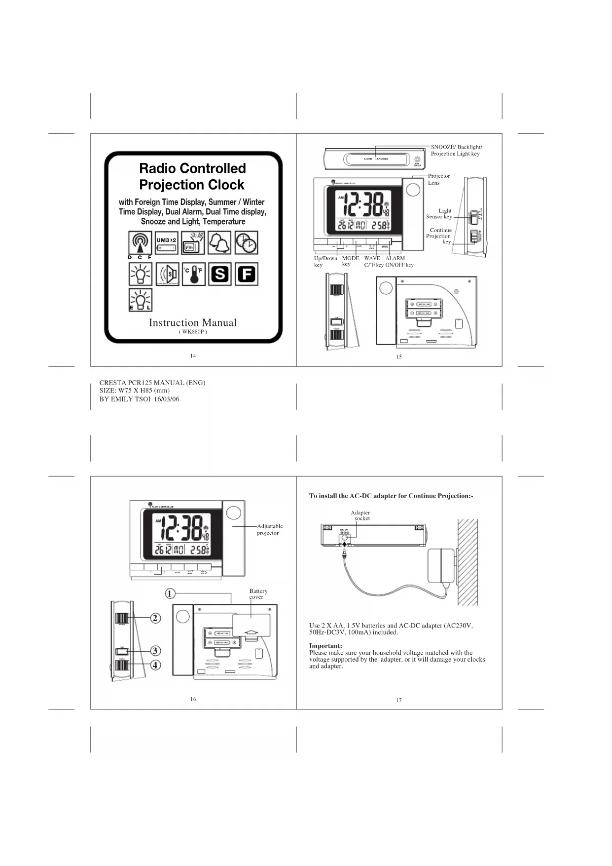 Download the instructions for your Clock in PDF format for free! Find your manual WK310T - Cresta and take your electronic device back in hand. On this page are published all the documents necessary for the use of your device. WK310T by Cresta.
