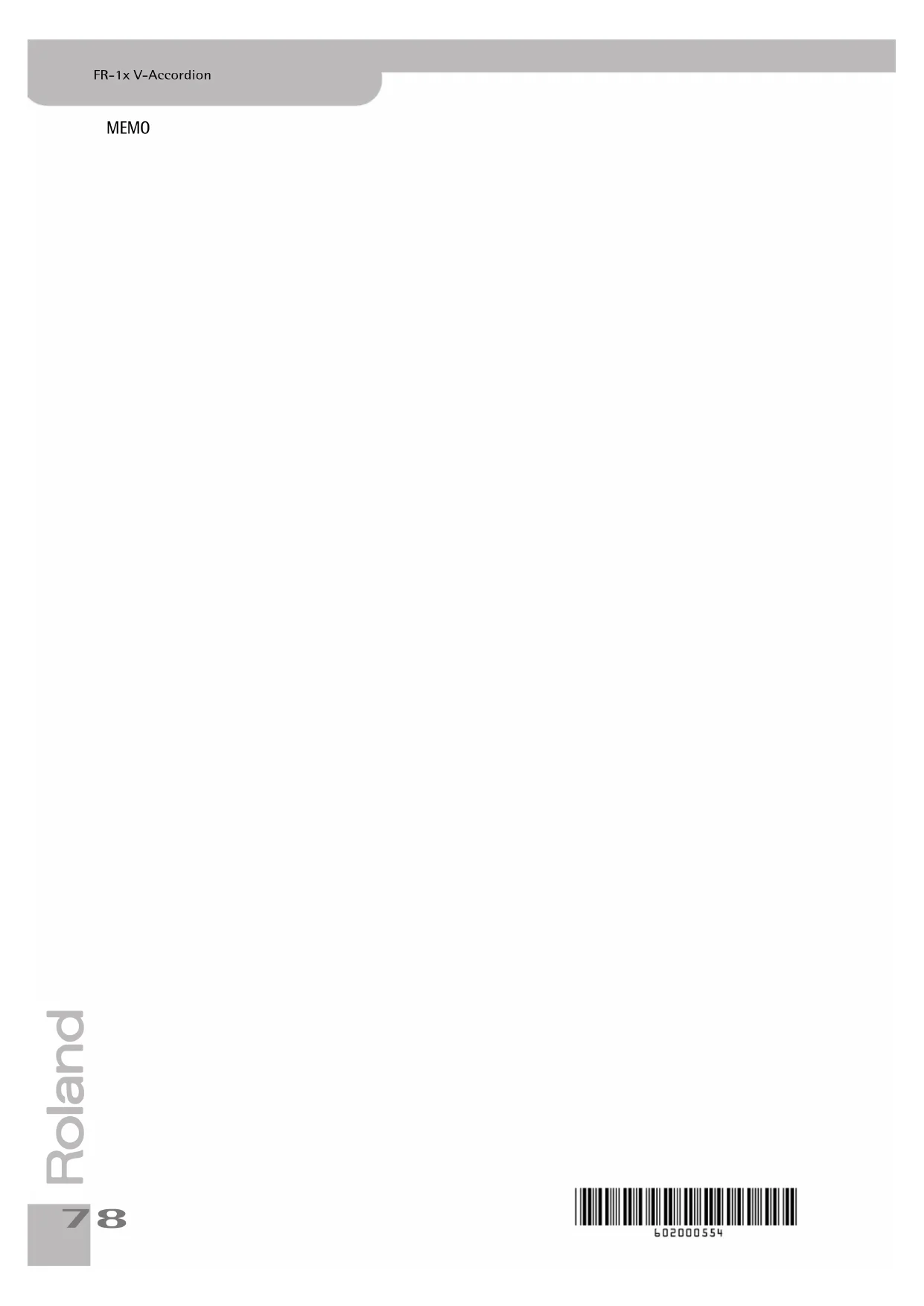 FR-1x V-Accordion MEMO FR-1x_F.book Page 78 Monday, January 9, 2012 12:34 PMFor EU Countries For China WARNING This product contains chemicals known to cause cancer, birth defects and other reproductive harm, including lead. For C.A. US