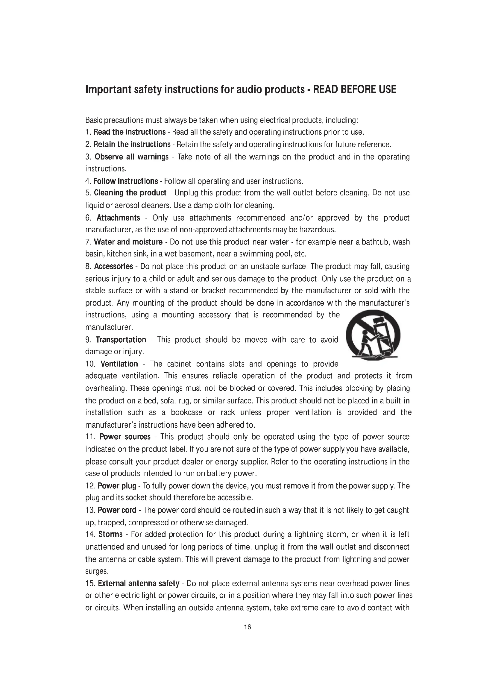 Important safety instructions for audio products - READ BEFORE USE