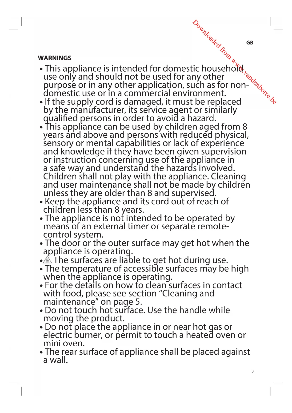 - The rear surface of appliance shall be placed against a wall. Downloaded from www.vandenborre.be4