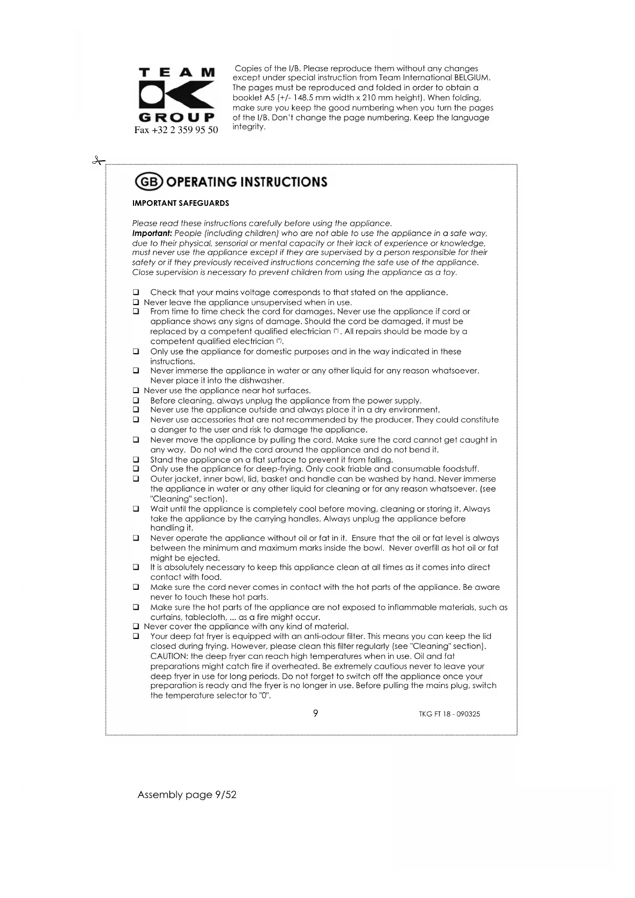 TKG FT 18 - Deep fryer TEAM - Free user manual and instructions