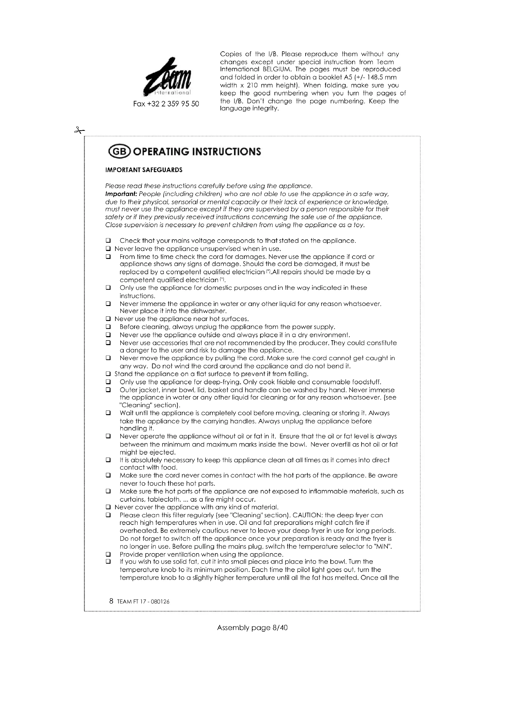 FT 17 - Deep fryer TEAM - Free user manual and instructions