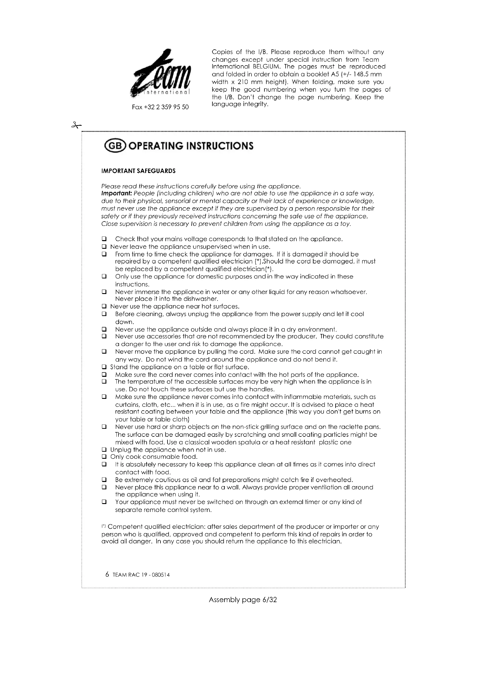 Download the instructions for your Fondue, raclette and wok appliance in PDF format for free! Find your manual RAC 19 - TEAM and take your electronic device back in hand. On this page are published all the documents necessary for the use of your device. RAC 19 by TEAM.