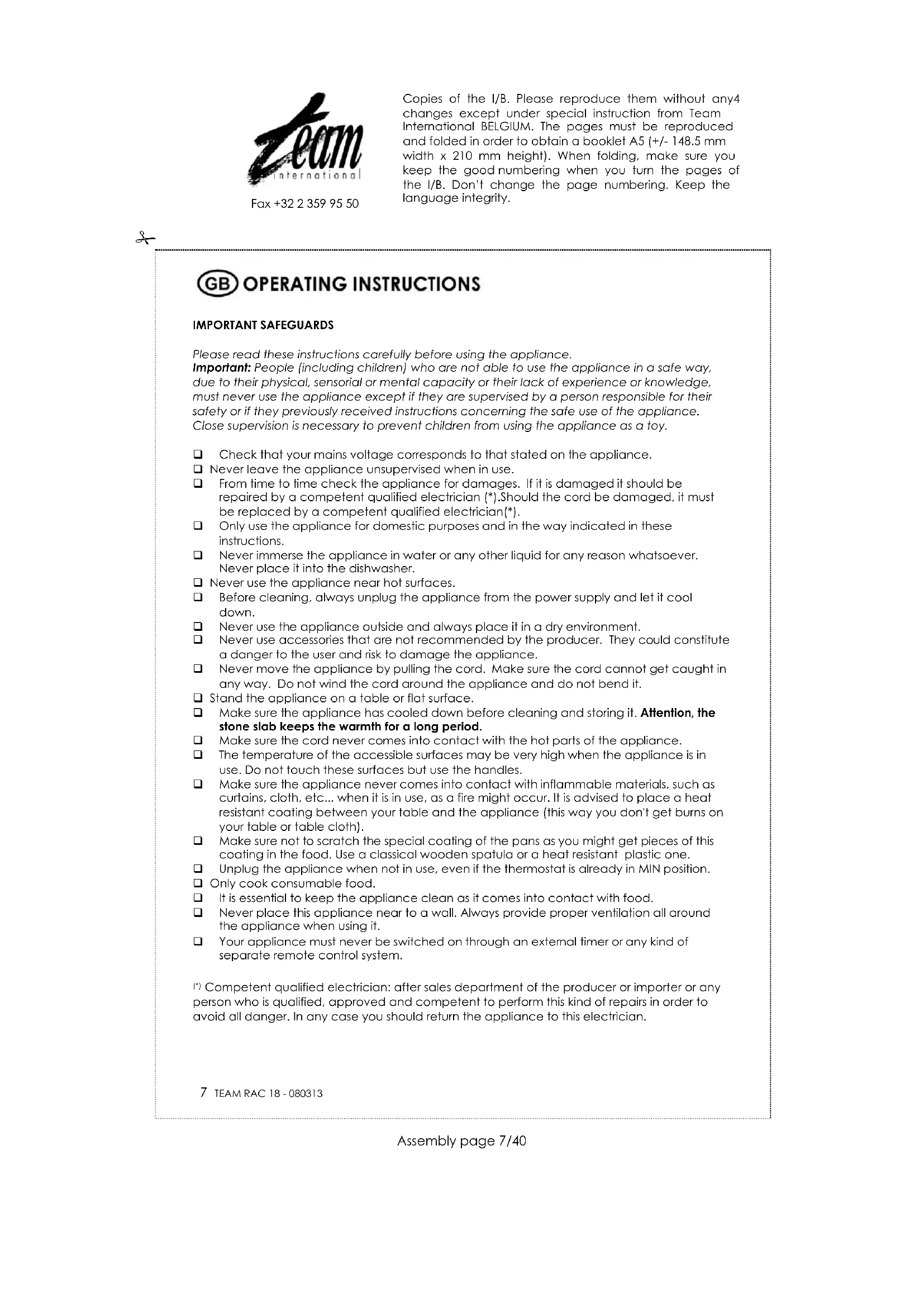 Download the instructions for your Fondue, raclette and wok appliance in PDF format for free! Find your manual RAC 18 - TEAM and take your electronic device back in hand. On this page are published all the documents necessary for the use of your device. RAC 18 by TEAM.