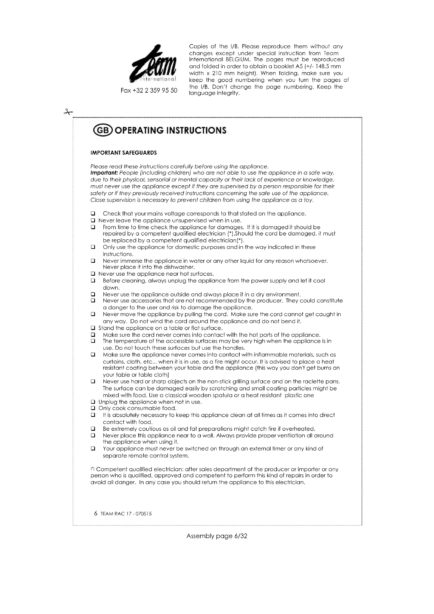 Download the instructions for your Fondue, raclette and wok appliance in PDF format for free! Find your manual RAC 17 - TEAM and take your electronic device back in hand. On this page are published all the documents necessary for the use of your device. RAC 17 by TEAM.