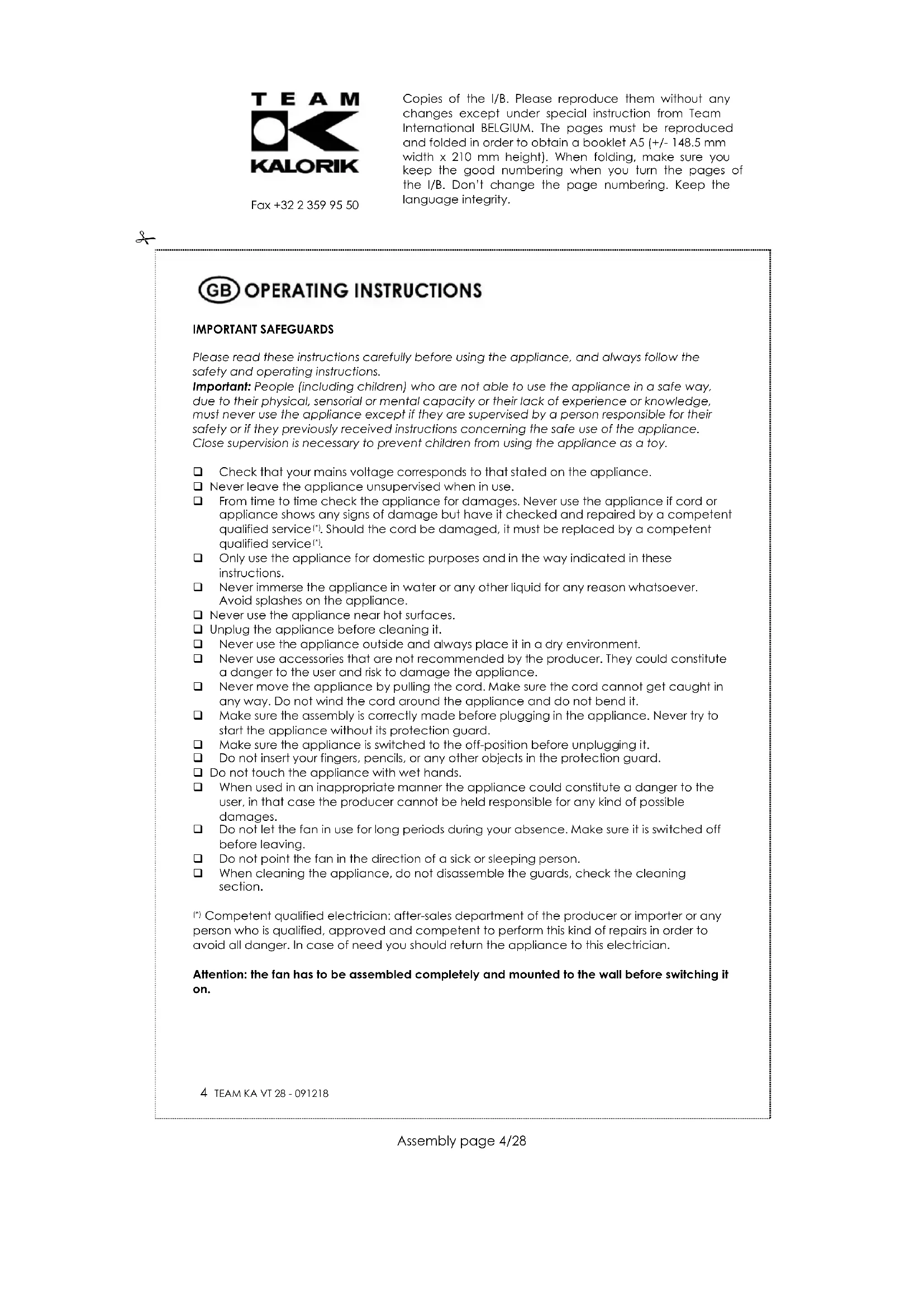 KA VT 28 - Fan TEAM - Free user manual and instructions