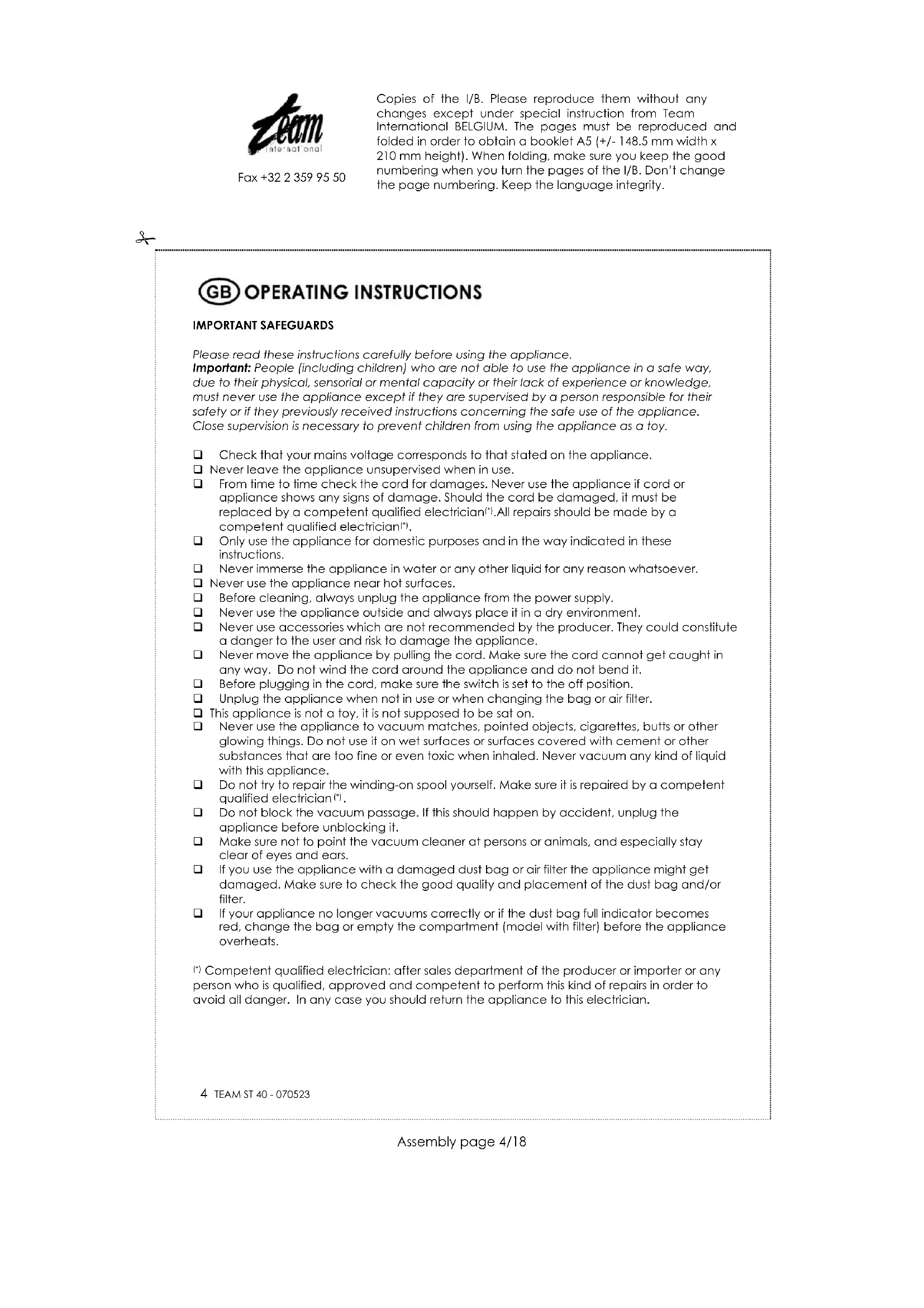 Download the instructions for your Vacuum Cleaner in PDF format for free! Find your manual ST 40 - TEAM and take your electronic device back in hand. On this page are published all the documents necessary for the use of your device. ST 40 by TEAM.