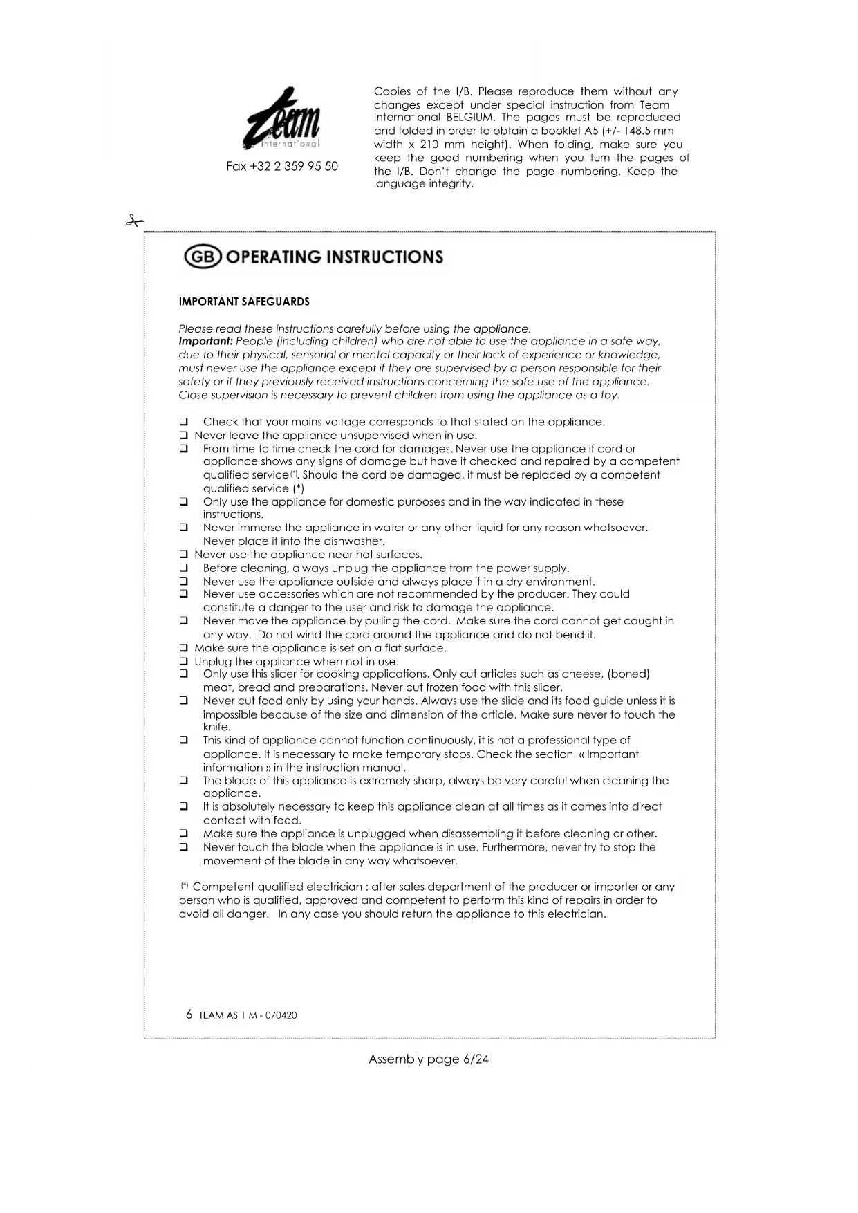 Download the instructions for your Slicer in PDF format for free! Find your manual AS 1 M - TEAM and take your electronic device back in hand. On this page are published all the documents necessary for the use of your device. AS 1 M by TEAM.
