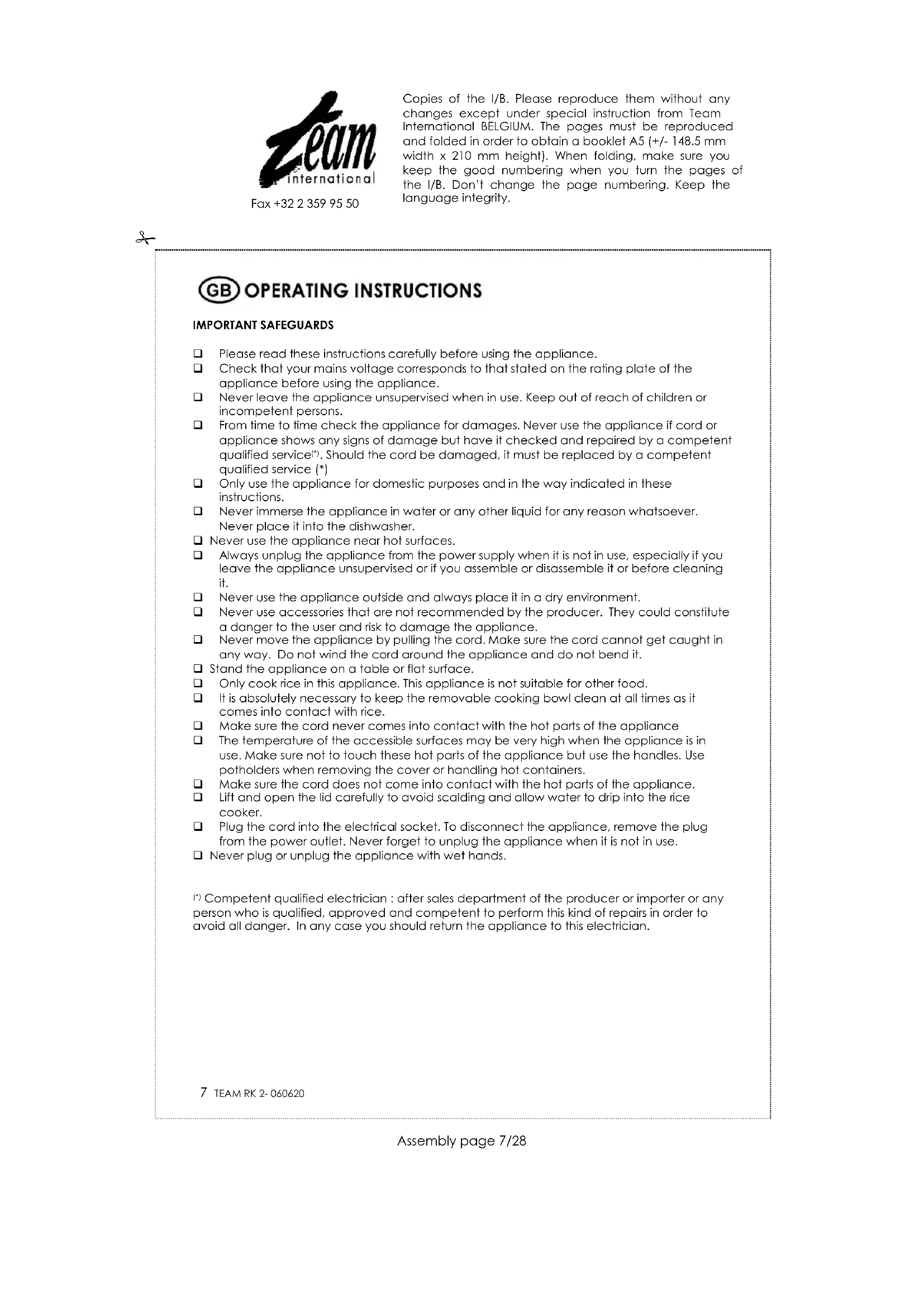 Download the instructions for your Rice cooker in PDF format for free! Find your manual RK 2 - TEAM and take your electronic device back in hand. On this page are published all the documents necessary for the use of your device. RK 2 by TEAM.