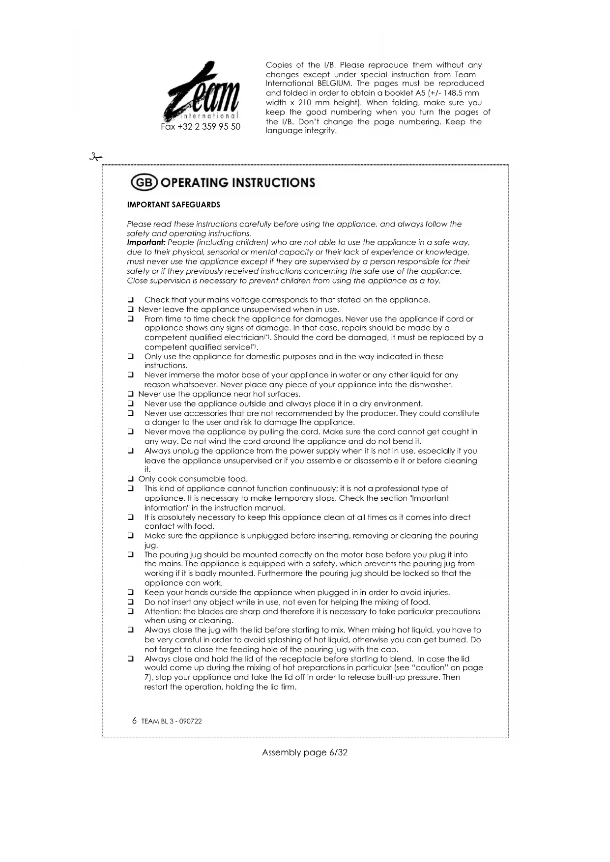 Download the instructions for your Mixer in PDF format for free! Find your manual BL 3 S - TEAM and take your electronic device back in hand. On this page are published all the documents necessary for the use of your device. BL 3 S by TEAM.