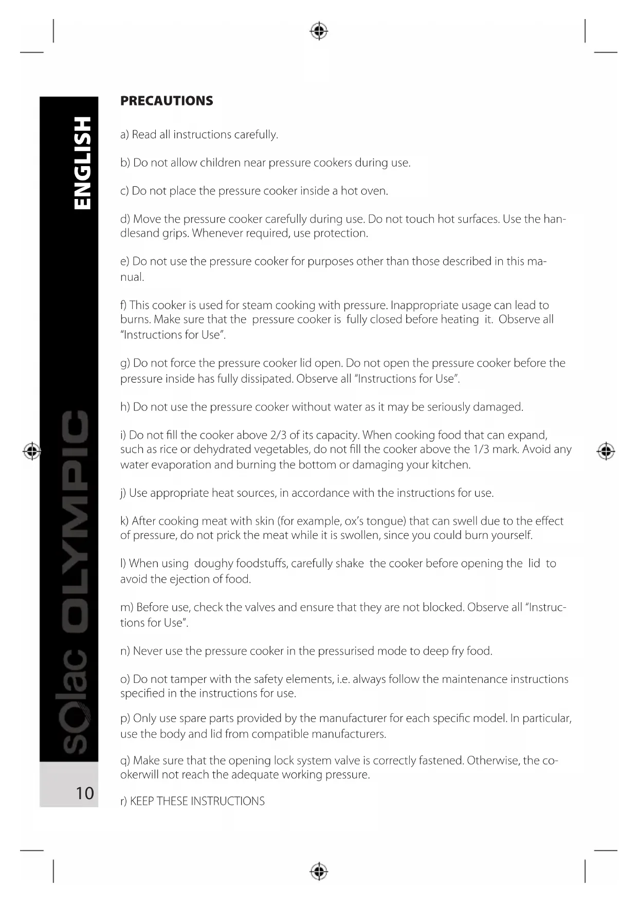 e) Do not use the pressure cooker for purposes other than those described in this manual.