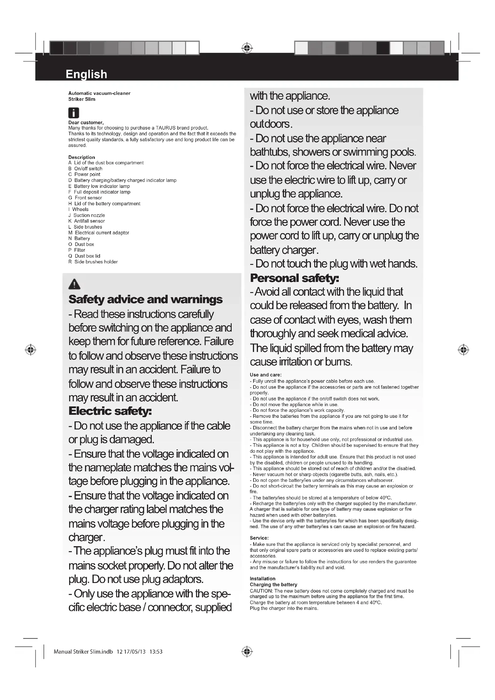 Striker Slim - Aspirateur TAURUS - Free user manual and instructions