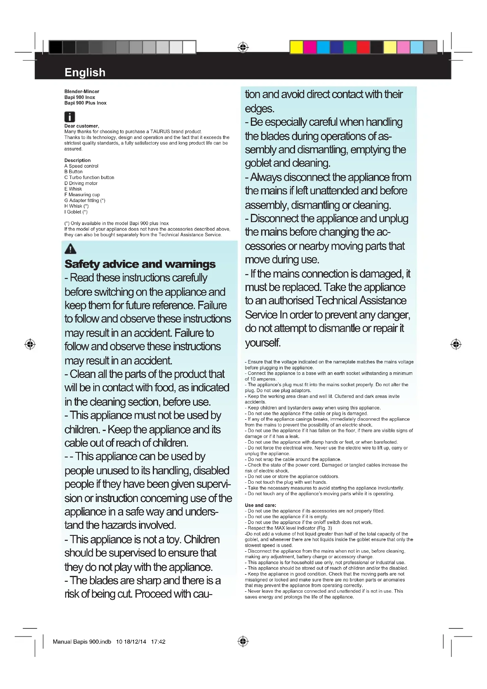 Download the instructions for your Mixer in PDF format for free! Find your manual Bapi 900 Inox - TAURUS and take your electronic device back in hand. On this page are published all the documents necessary for the use of your device. Bapi 900 Inox by TAURUS.