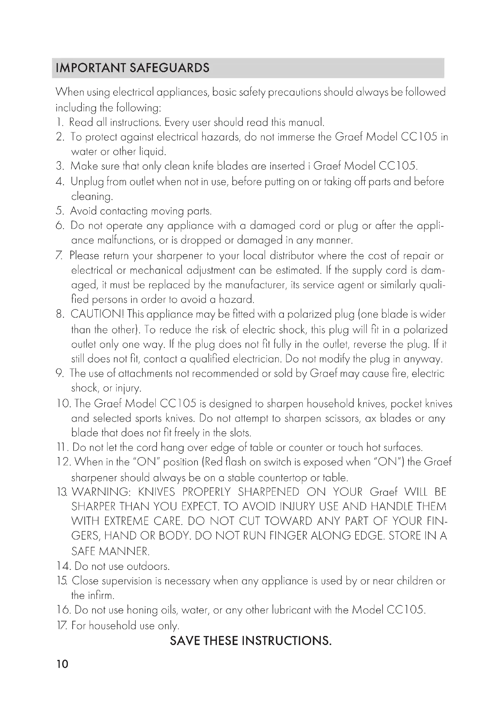 USER MANUAL Chef's Choice CC 105 GRAEF