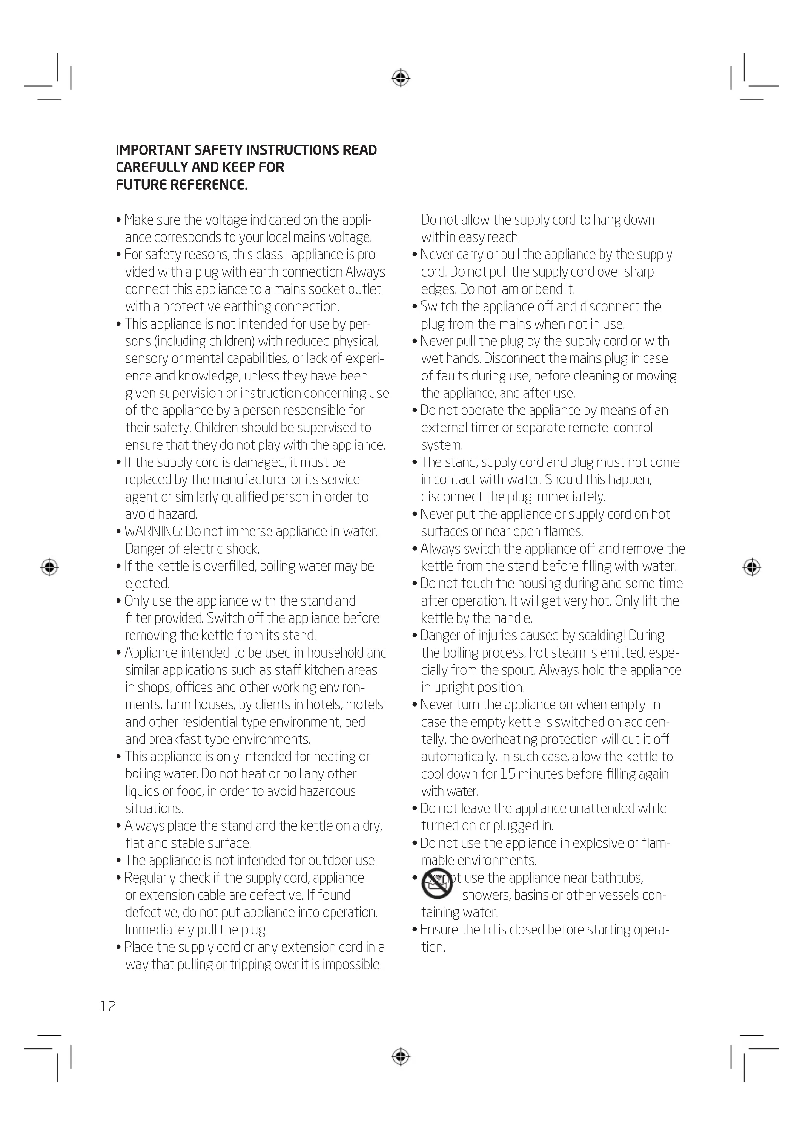 - This appliance is only intended for heating or boiling water. Do not heat or boil any other liquids or food, in order to avoid hazardous situations.