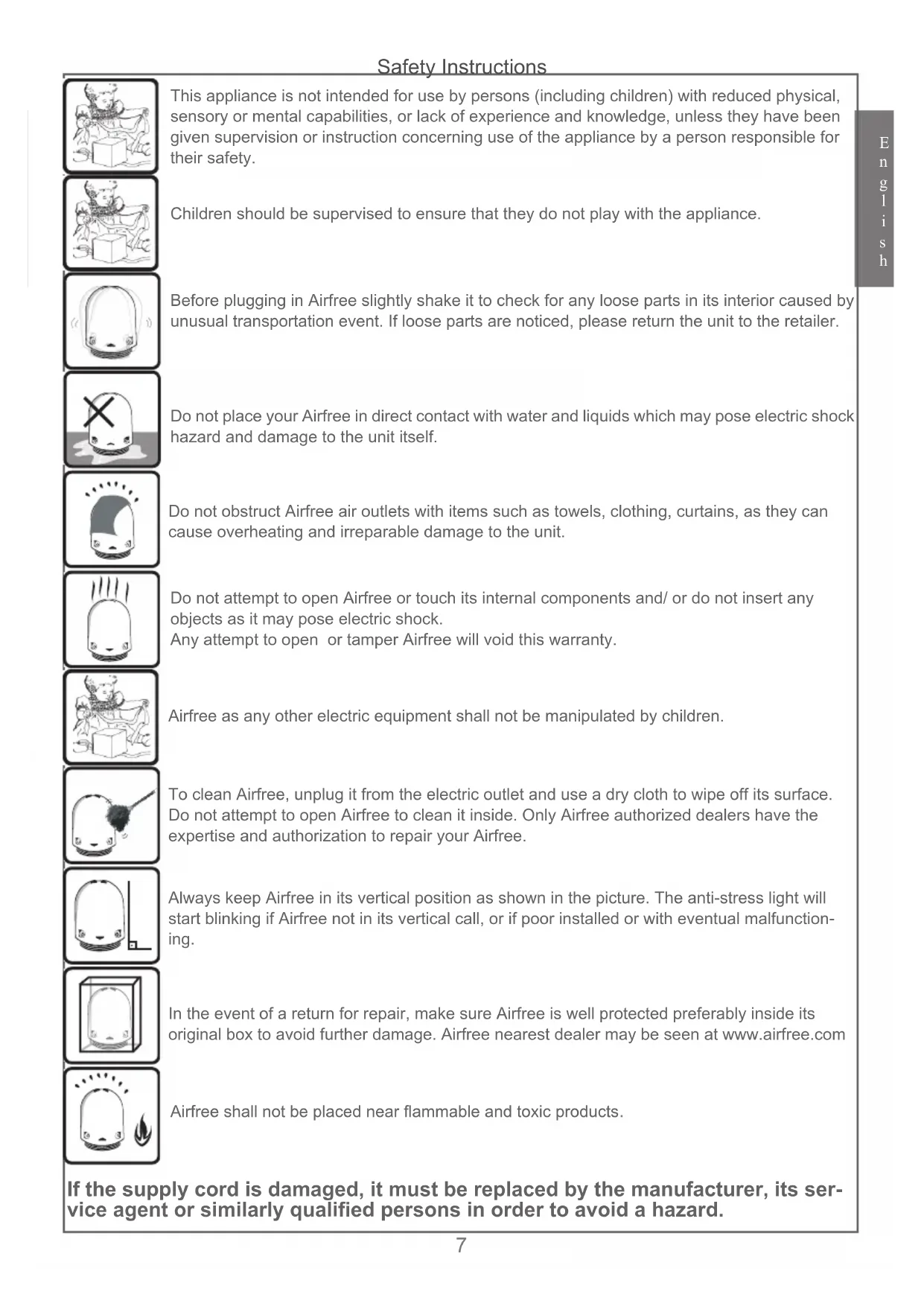 Download the instructions for your Air purifier in PDF format for free! Find your manual Babyair E60 - Airfree and take your electronic device back in hand. On this page are published all the documents necessary for the use of your device. Babyair E60 by Airfree.
