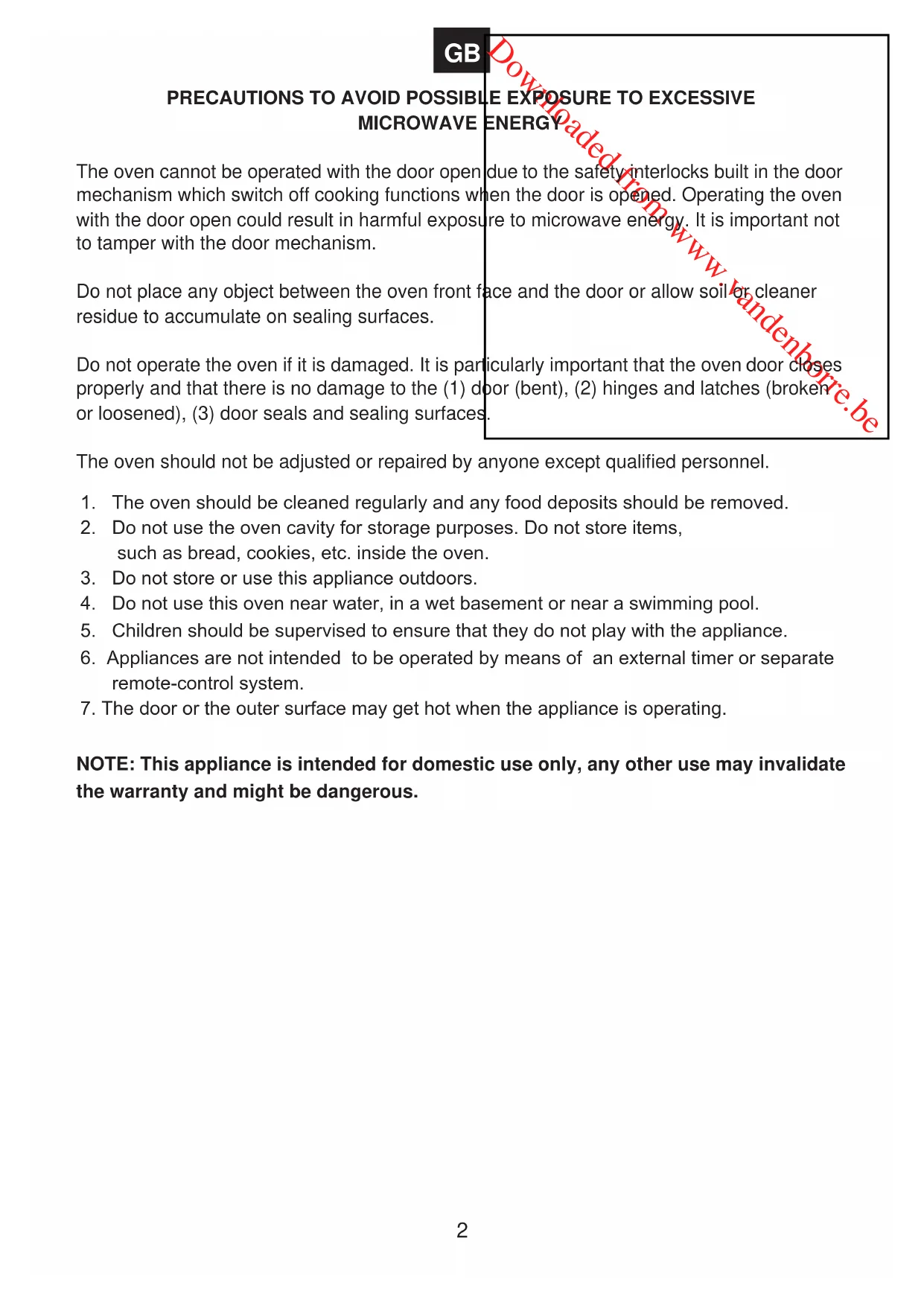 This appliance is not intended for use by persons (including children) with reduced physical, sensory or mental capabilities, or lack of experience and knowledge, unless they have been given supervision or instructions concerning use of the appliance by a person responsible for their safety. If the supply cord is damaged, it must be replaced by the manufacturer, its service agent or similarly qualified persons in order to avoid a hazard.Downloaded from www.vandenborre.be
