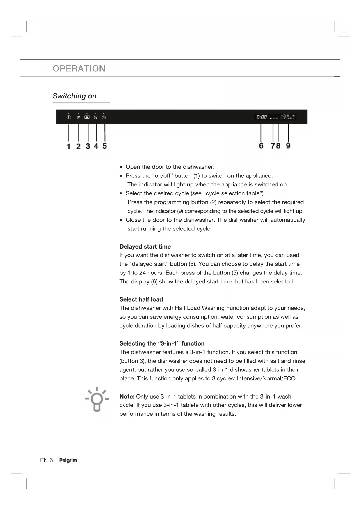 GVW481ONY - Dishwasher Pelgrim - Free user manual and instructions