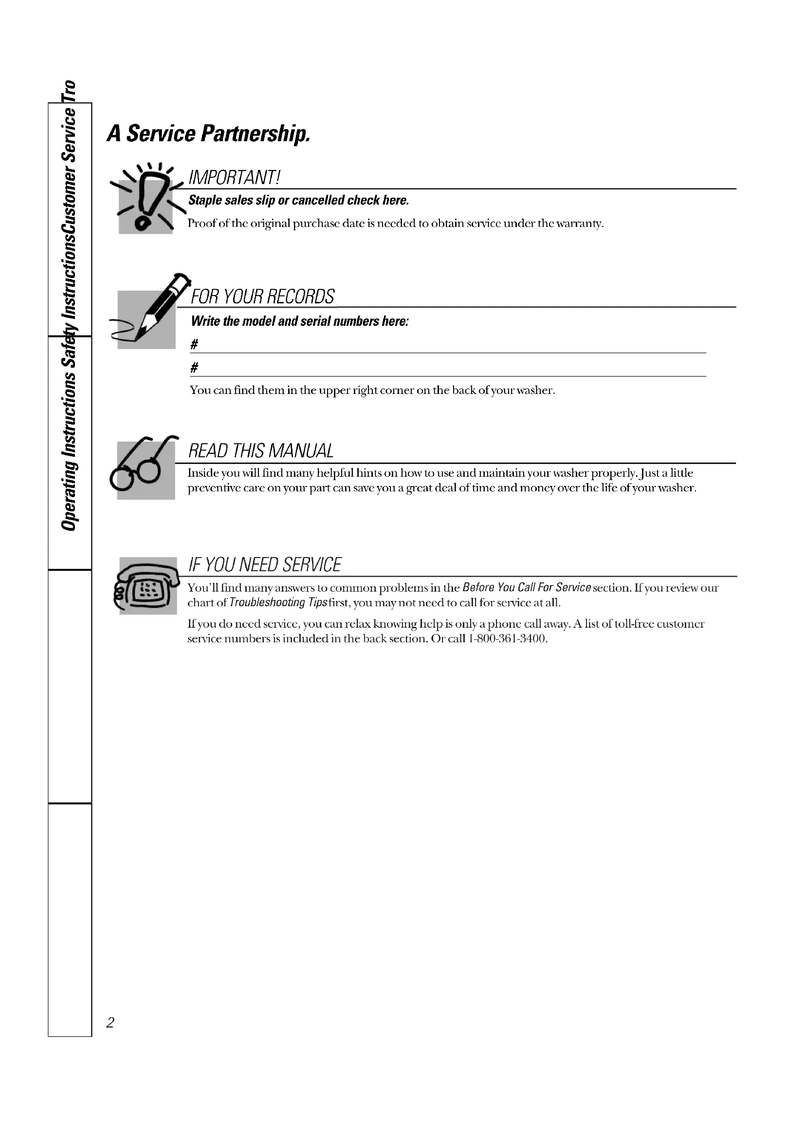 Use thisapplianceonly for itsintendedpurpose asdescribed inthis Owner’sManual.Model GBXR1080 Find your washer control panel. Operating Instructions Safety InstructionsCustomer Service Troubleshooting Tips You can locate your model number behind the top edge of the control panel.