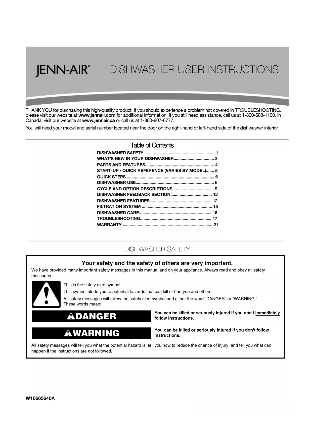 THANK YOU for purchasing this high-quality product. If you should experience a problem not covered in TROUBLESHOOTING, please visit our website at www.jennair.com for additional information. If you still need assistance, call us at 1-800-688-1100. In Canada, visit our website at www.jennair.ca or call us at 1-800-807-6777.