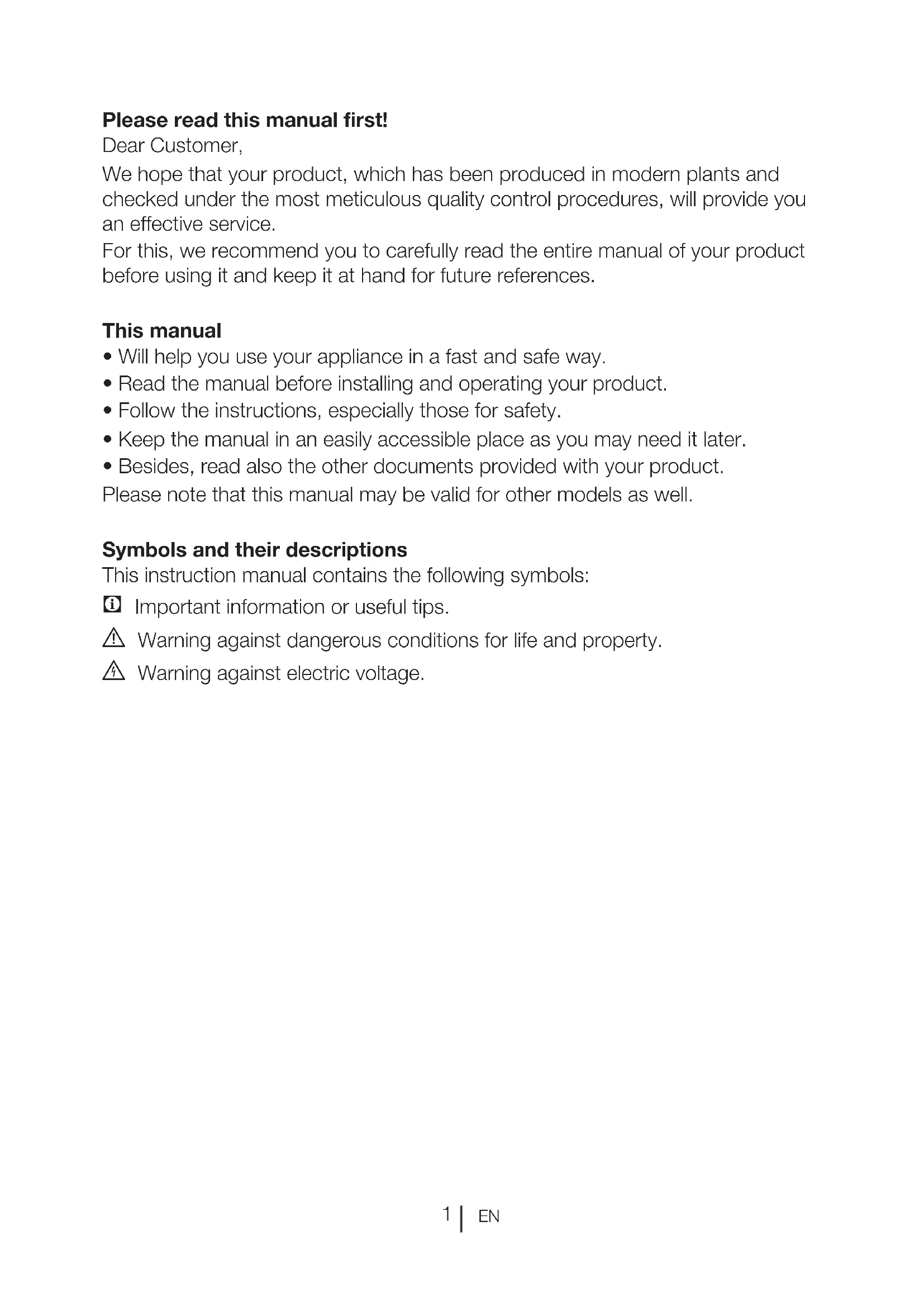 Please read this manual first! Dear Customer, We hope that your product, which has been produced in modern plants and checked under the most meticulous quality control procedures, will provide you an effective service. For this, we recommend you to carefully read the entire manual of your product before using it and keep it at hand for future references. This manual